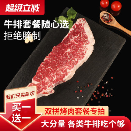 ray澳洲进口板腱腹心肉牛排原切牛排雪花牛肉双拼烤肉牛扒家庭装