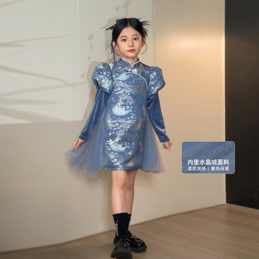 NORNOR陈大猪童装女童长袖连衣裙2025新款中式旗袍裙儿童裙子加绒