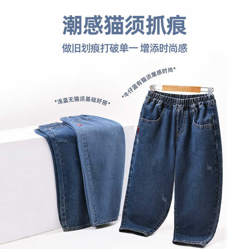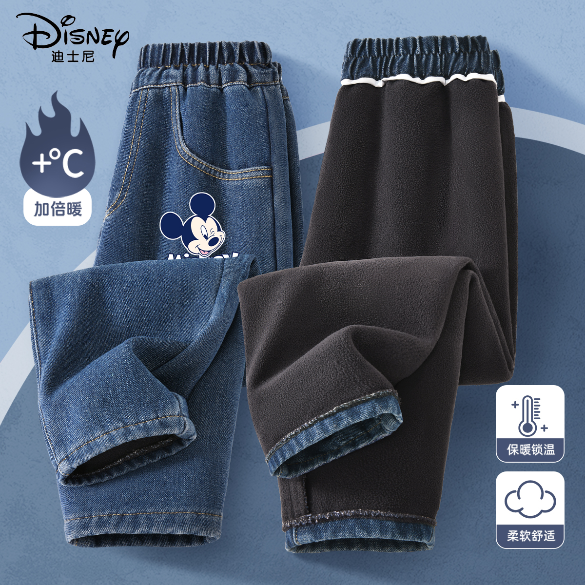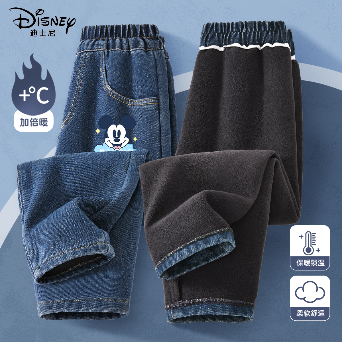 迪士尼男童加绒牛仔裤一体绒加厚保暖长裤儿童裤子2025新款小男孩