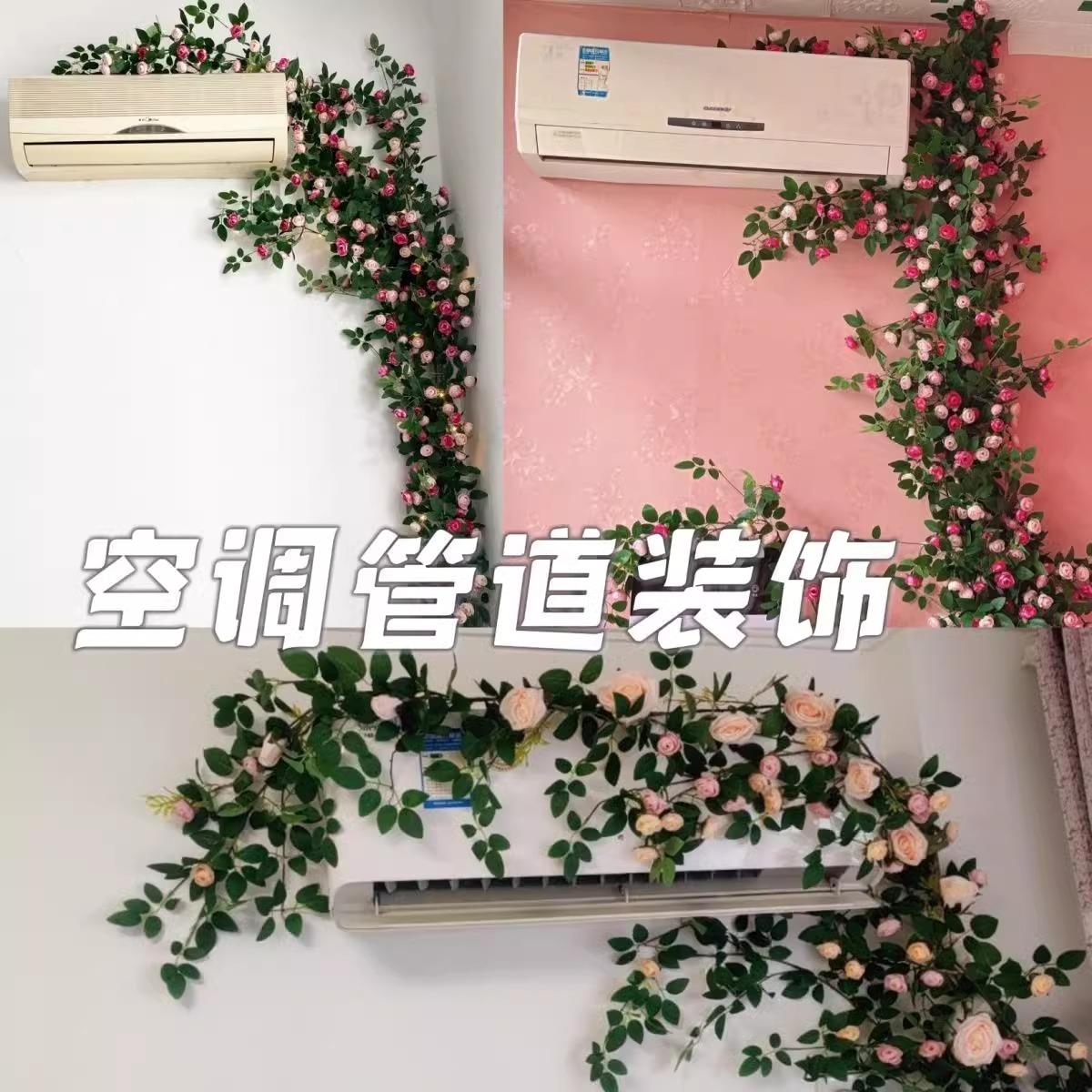 仿真玫瑰假花藤条空调水管道遮挡装饰阳台吊篮栏杆栅栏藤椅缠绕