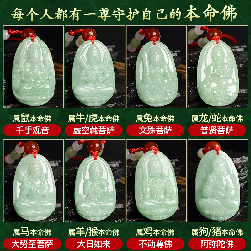 天然翡翠本命佛吊坠十二生肖文殊虚空藏普贤菩萨千手观音男女项链