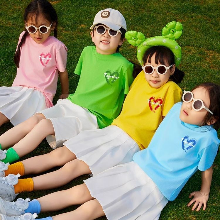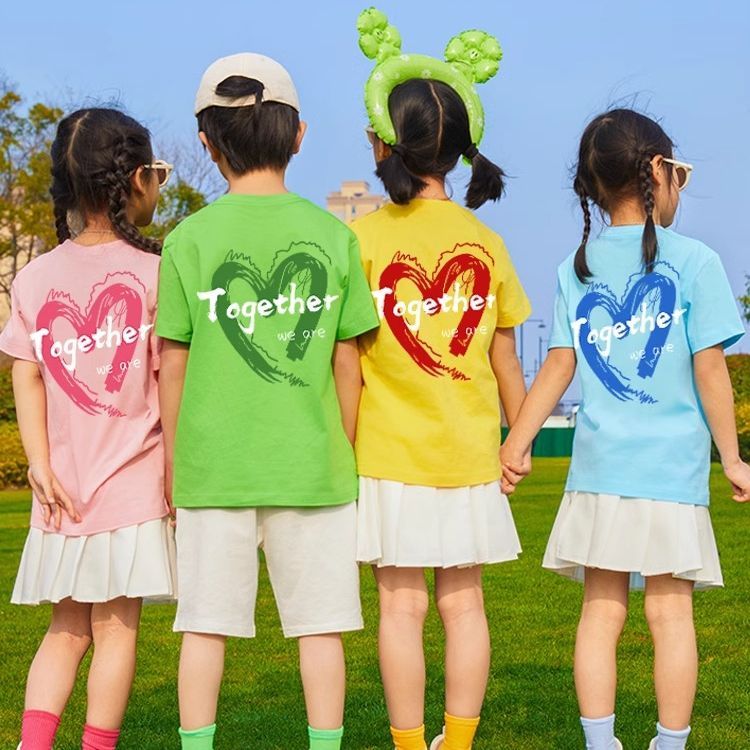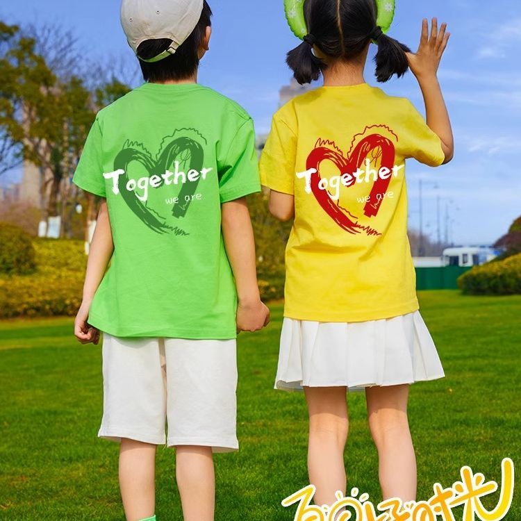 亲子装t恤夏彩色短袖幼儿园小学生六一演出服运动会班服套装定制