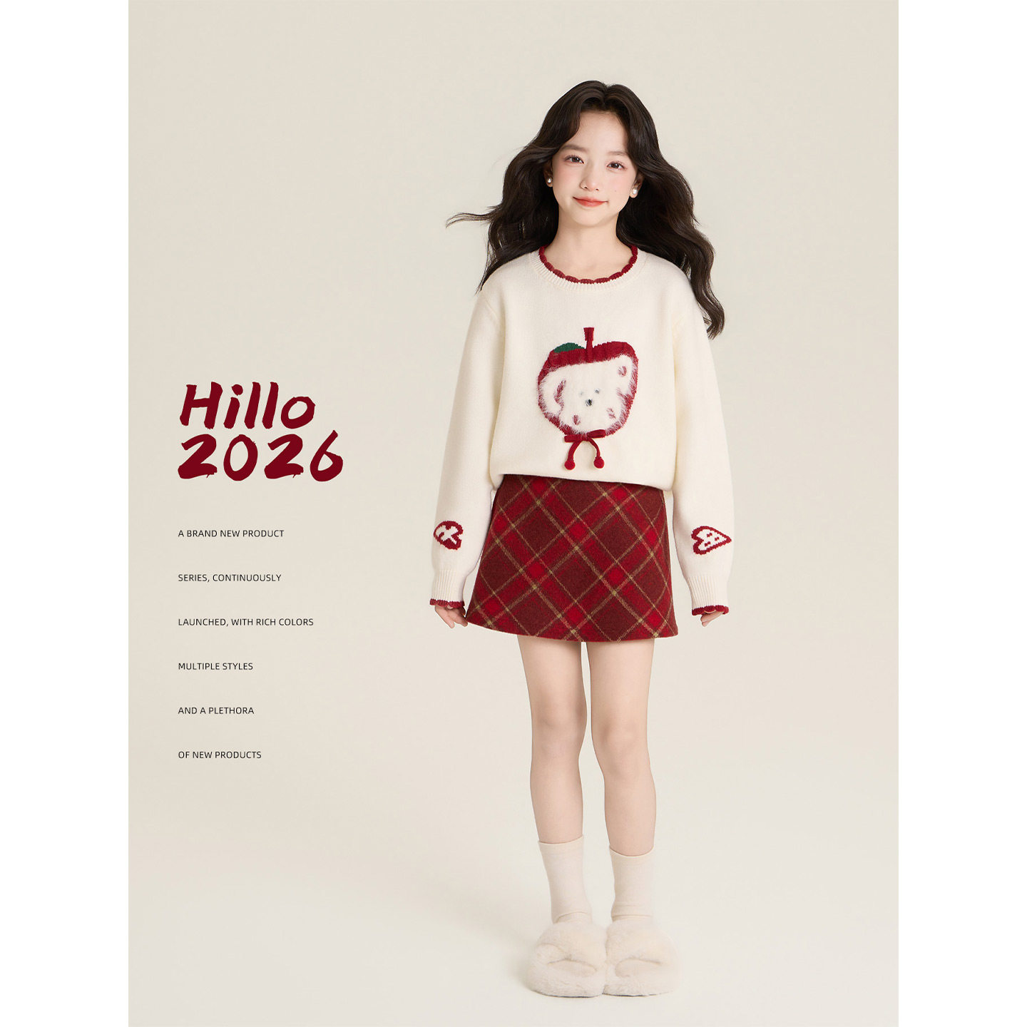 Amybaby女童裙子冬季2025新款新年氛围感复古呢子学院风少女A字裙