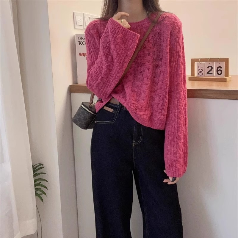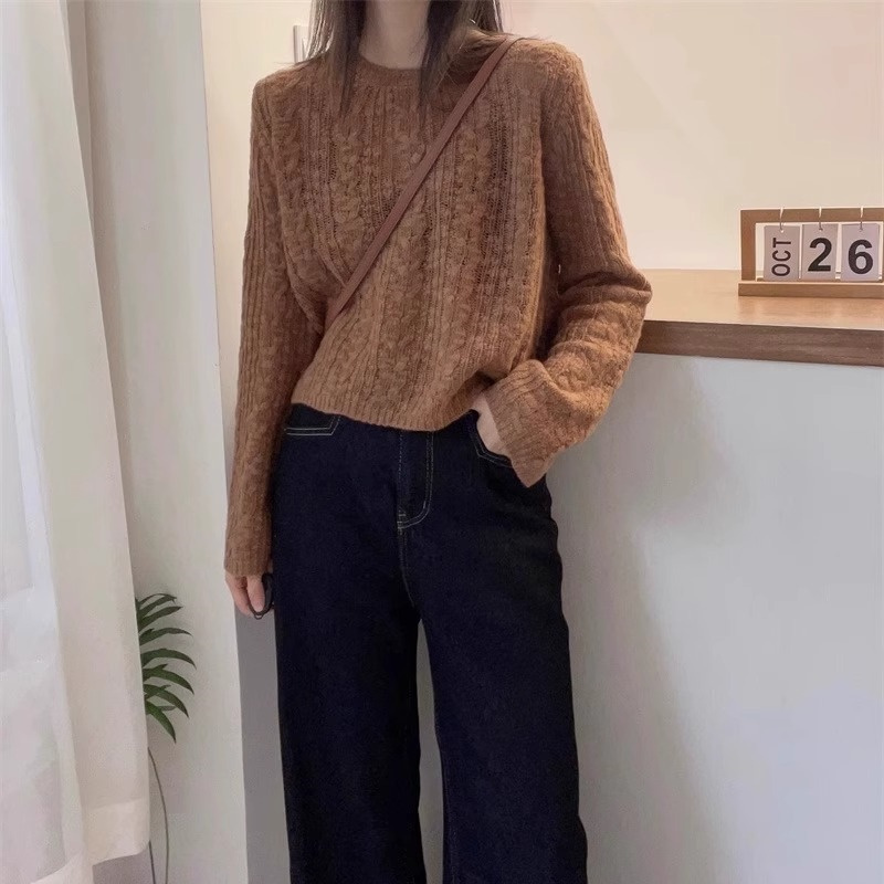 云朵纯色麻花羊毛针织衫女