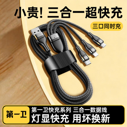 第一卫数据线三合一充电线100w手机快充一拖三适用苹果17华为安卓typec三线合一多功能USB-A充电车载通用加长