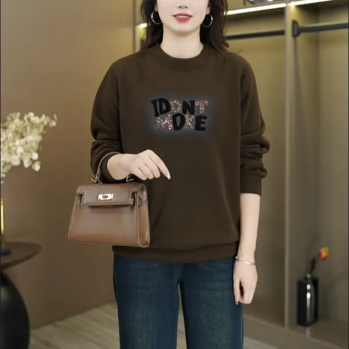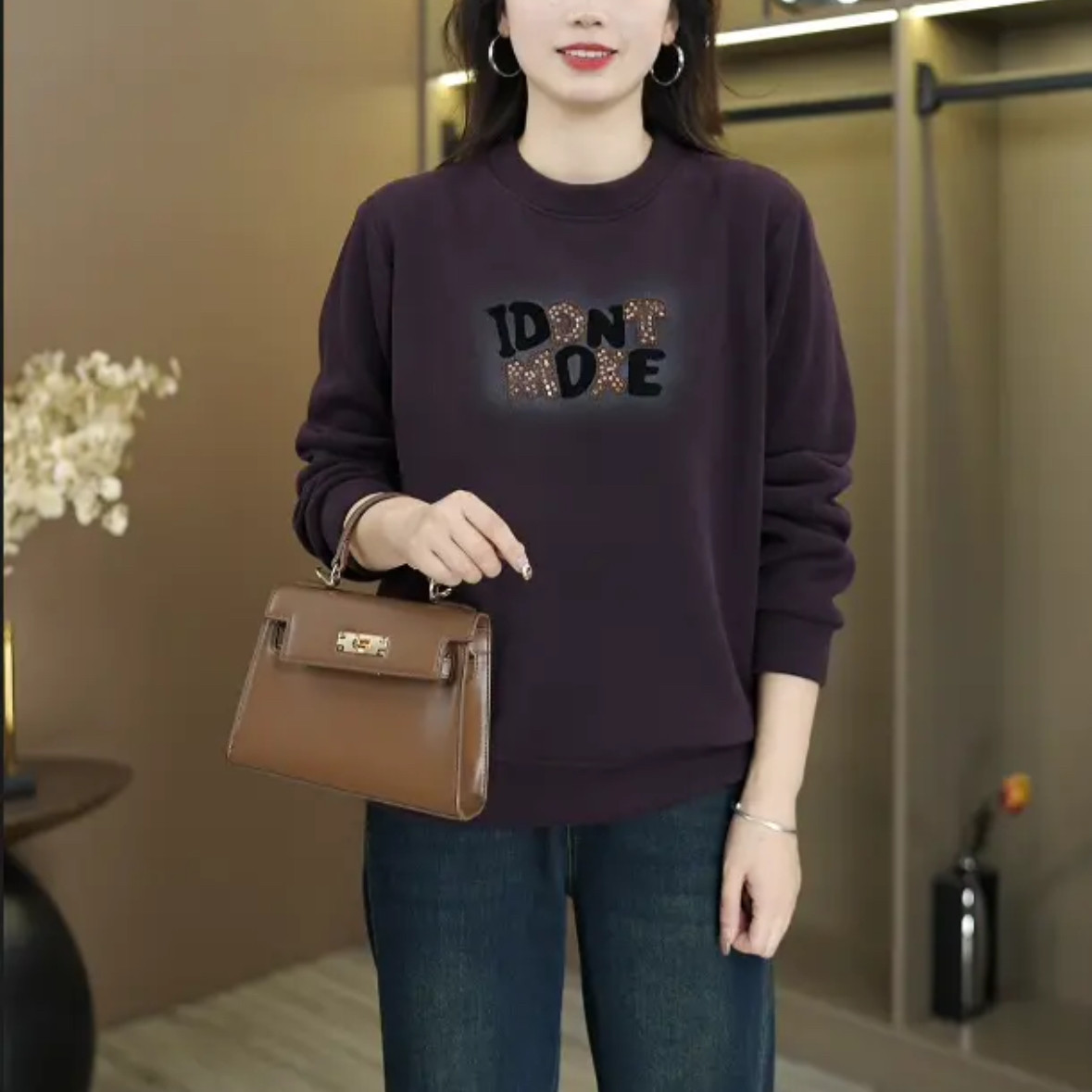 冬季新款加绒加厚圆领卫衣宽松大码气质休闲显瘦保暖洋气长袖潮