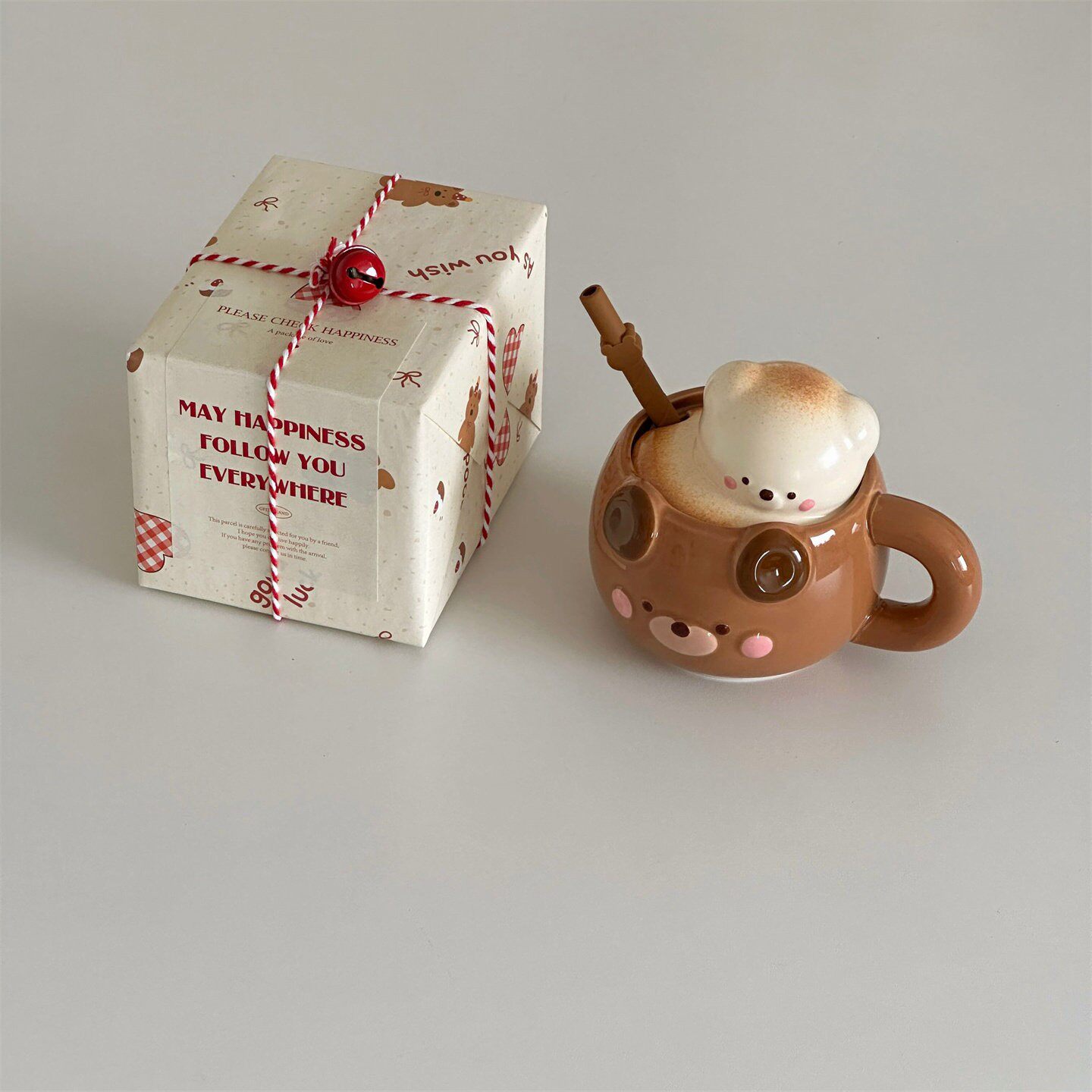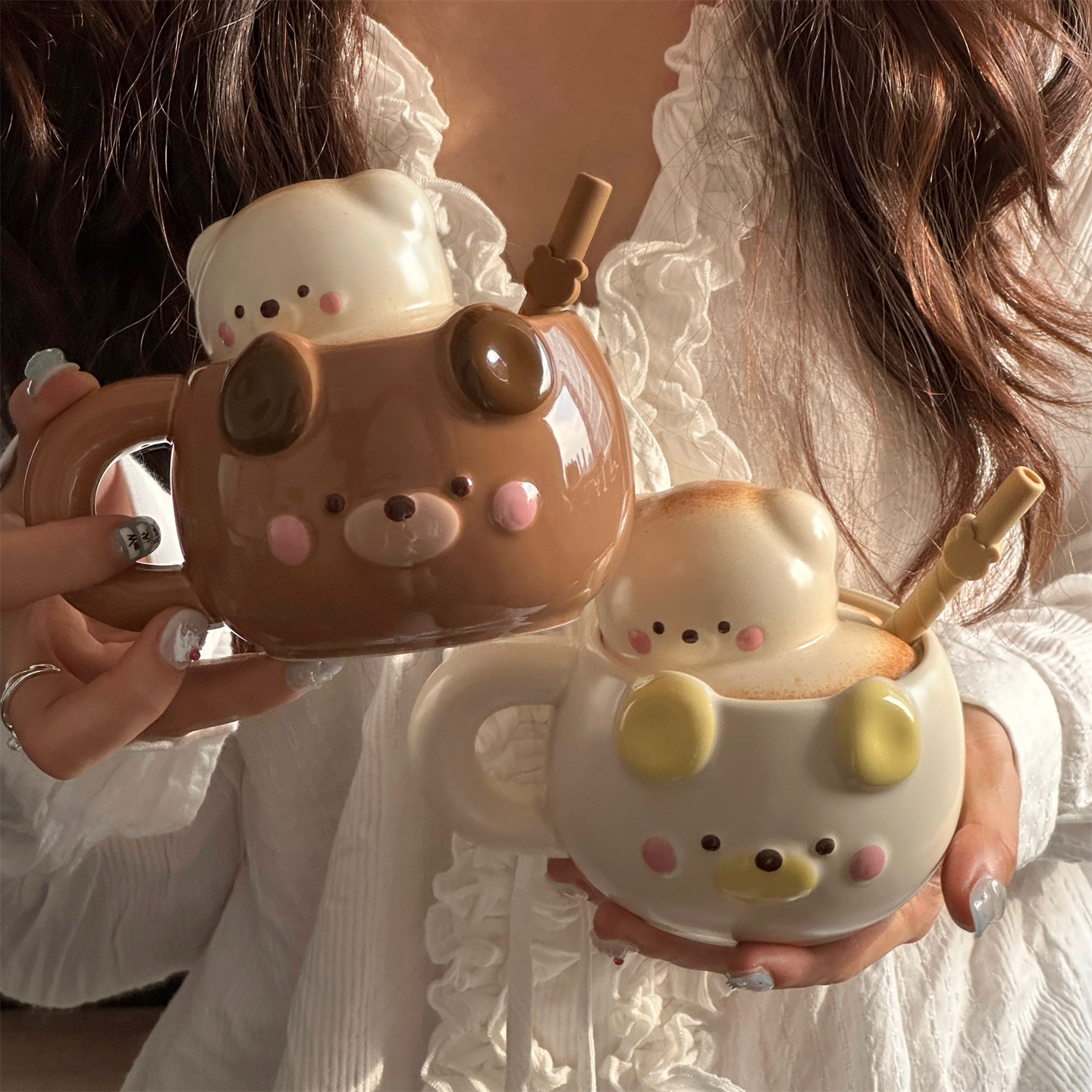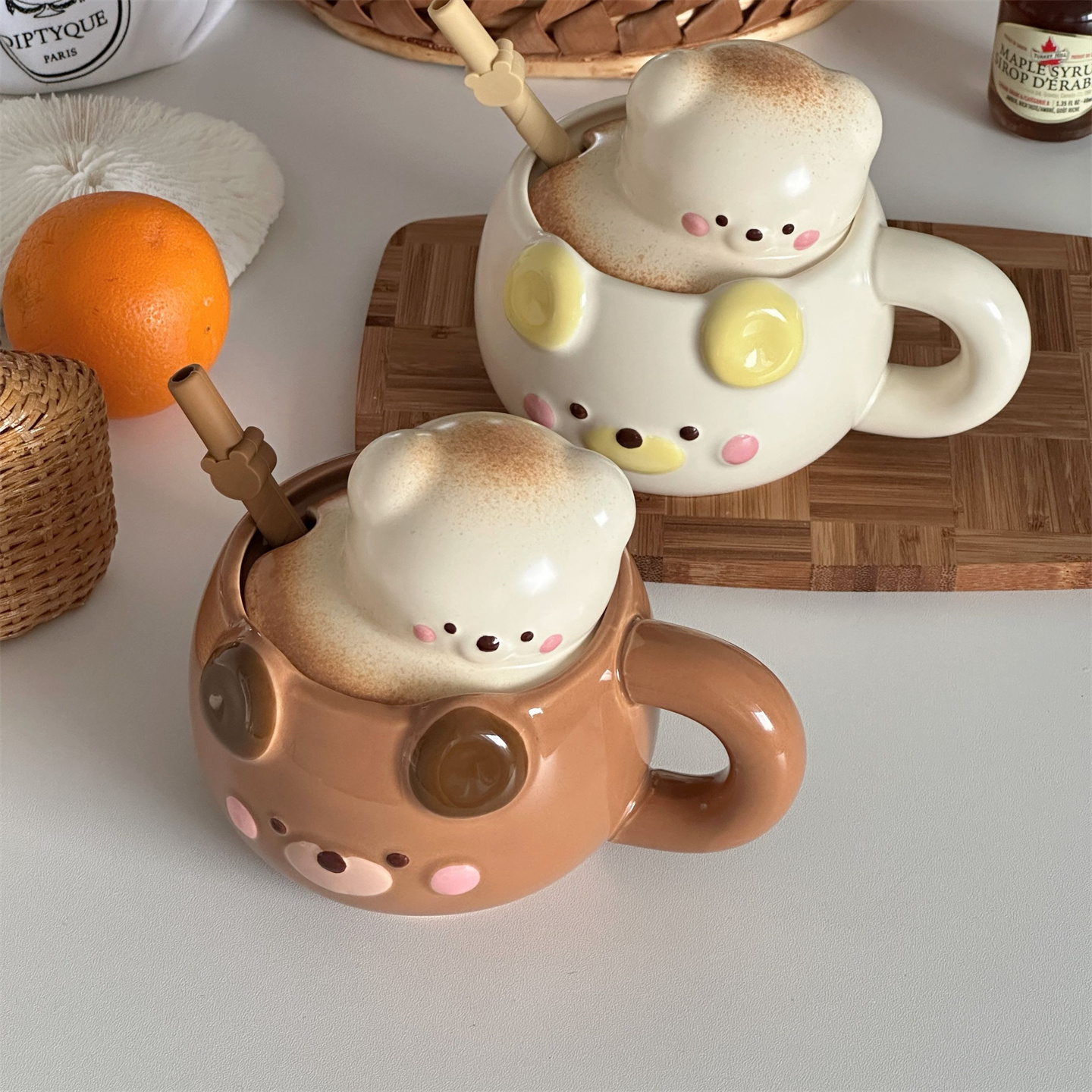 生日礼物送同学老师可爱棉花糖小熊陶瓷马克杯带盖吸管杯伴手礼物