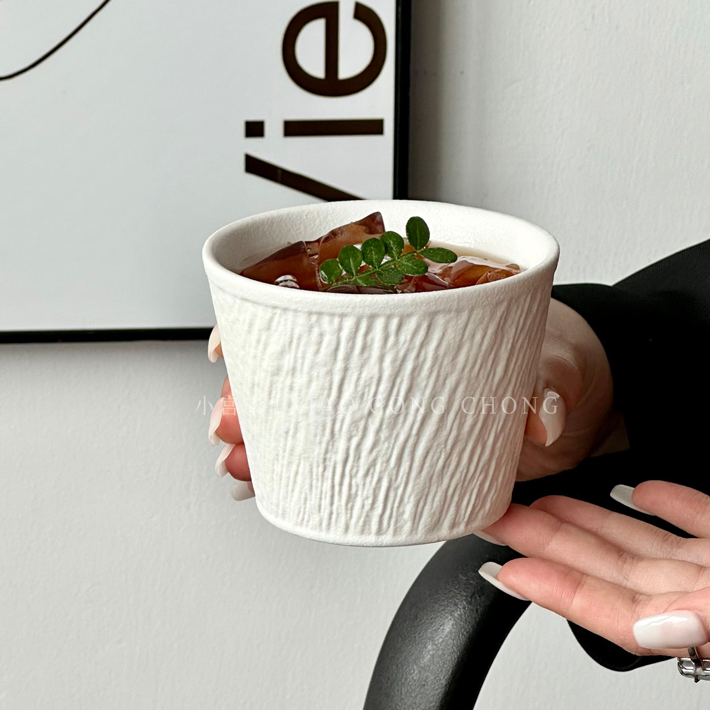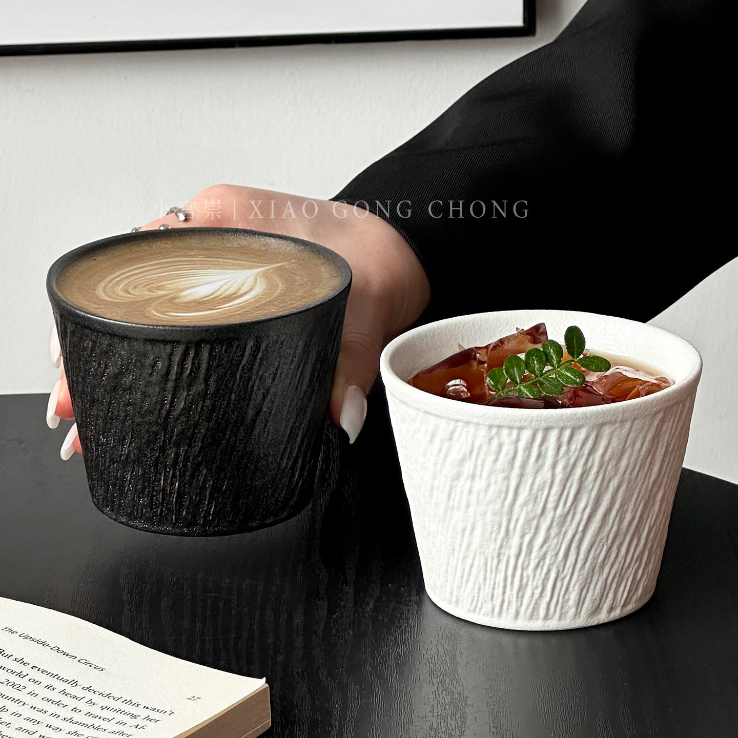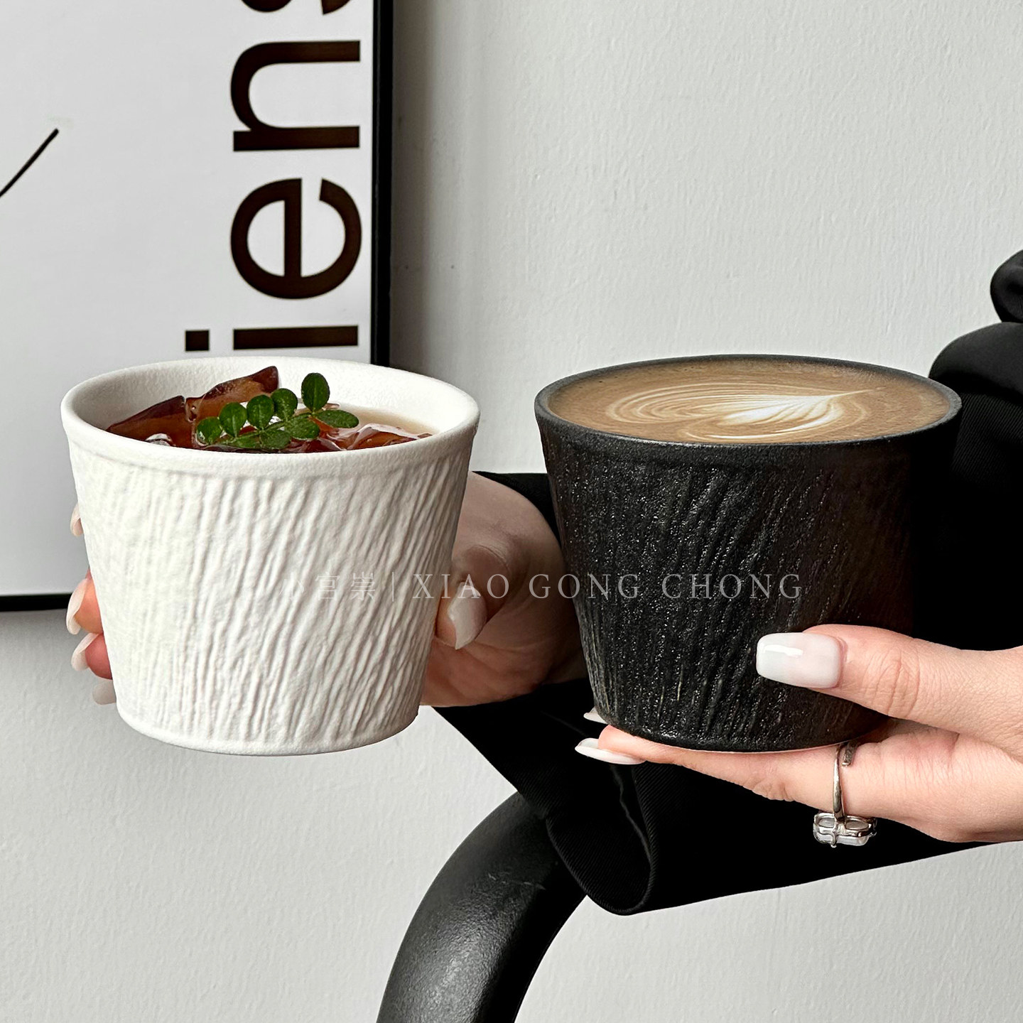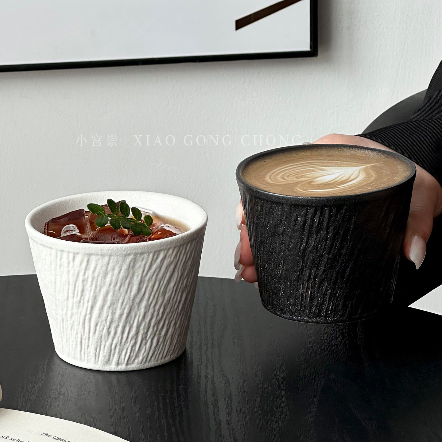 复古石纹咖啡杯陶瓷手握杯家用简约猪口杯下午茶拉花杯拿铁早餐杯