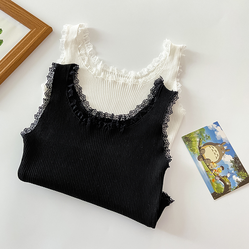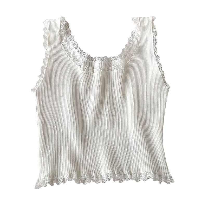 白色针织蕾丝吊带女夏季内搭甜美减龄法式小背心外穿薄款无袖t恤