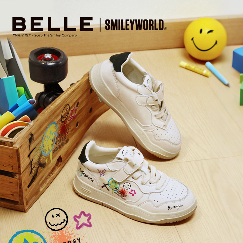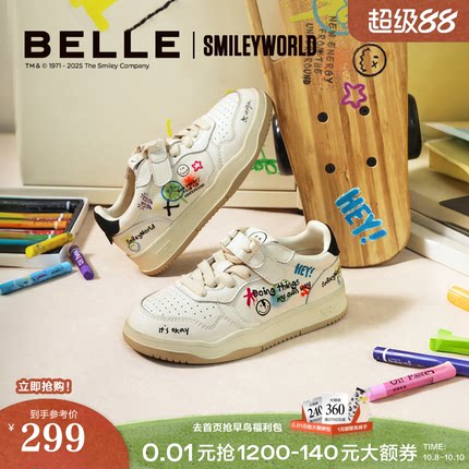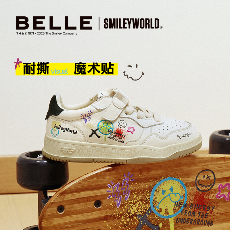 张凌赫同款百丽童鞋SMILEY联名流浪派对板鞋魔术贴小白鞋子6180预