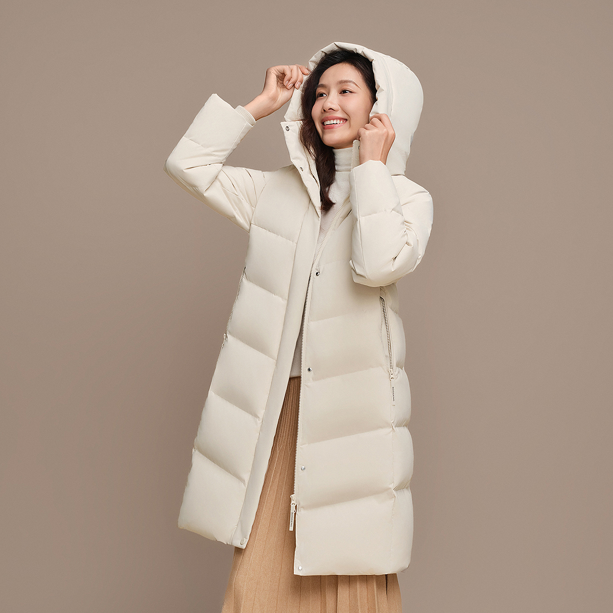 【90绒】波司登25新款羽绒服女士中长款连帽加厚百搭保暖外套显瘦