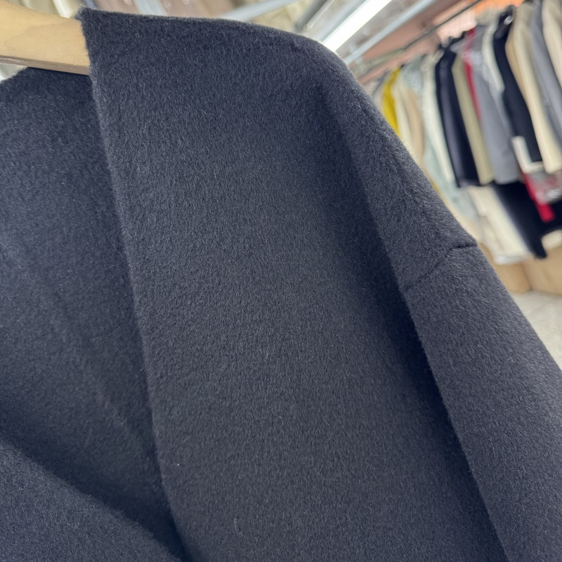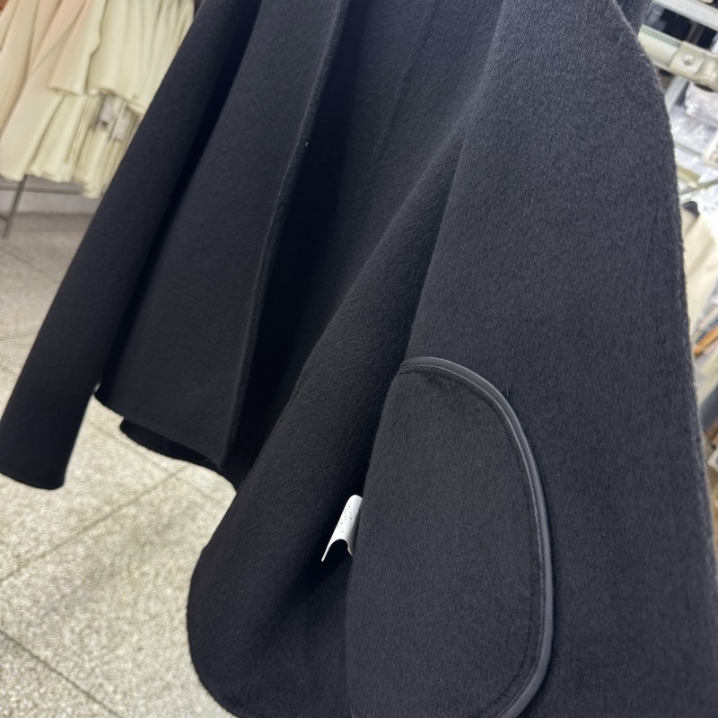 黑色无领短款双面绵羊毛大衣女25秋新款宽松时尚简约气质毛呢外套