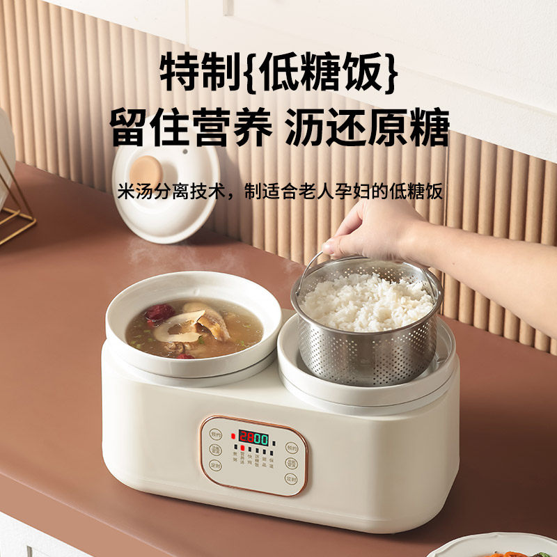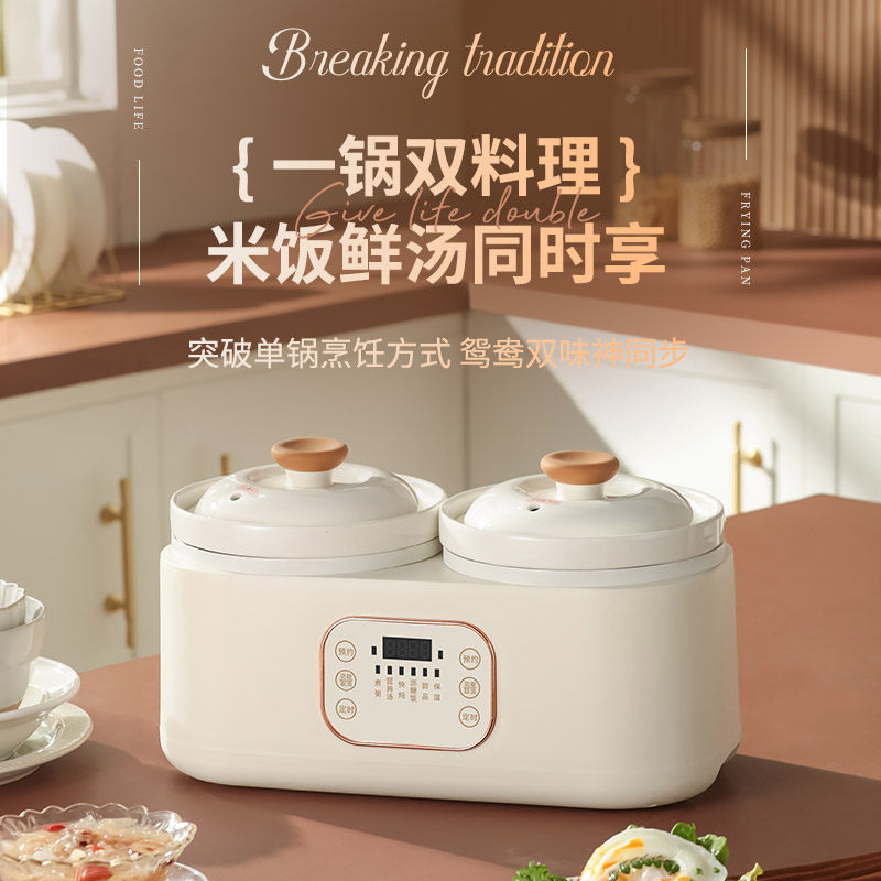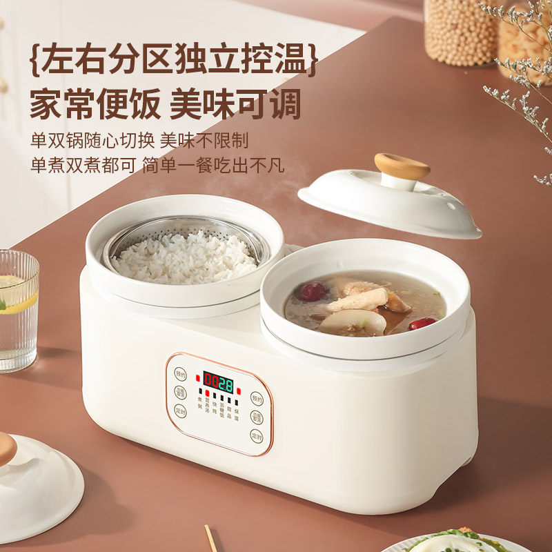 双胆电炖锅煮粥煲粥陶瓷炖锅煲汤炖汤锅家用 1-2人炖盅养生电汤锅