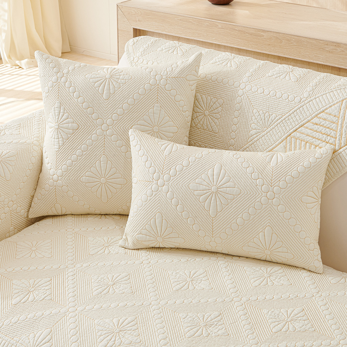米白色沙发垫四季通用防滑坐垫子纯棉全棉布艺防滑沙发盖布套罩巾