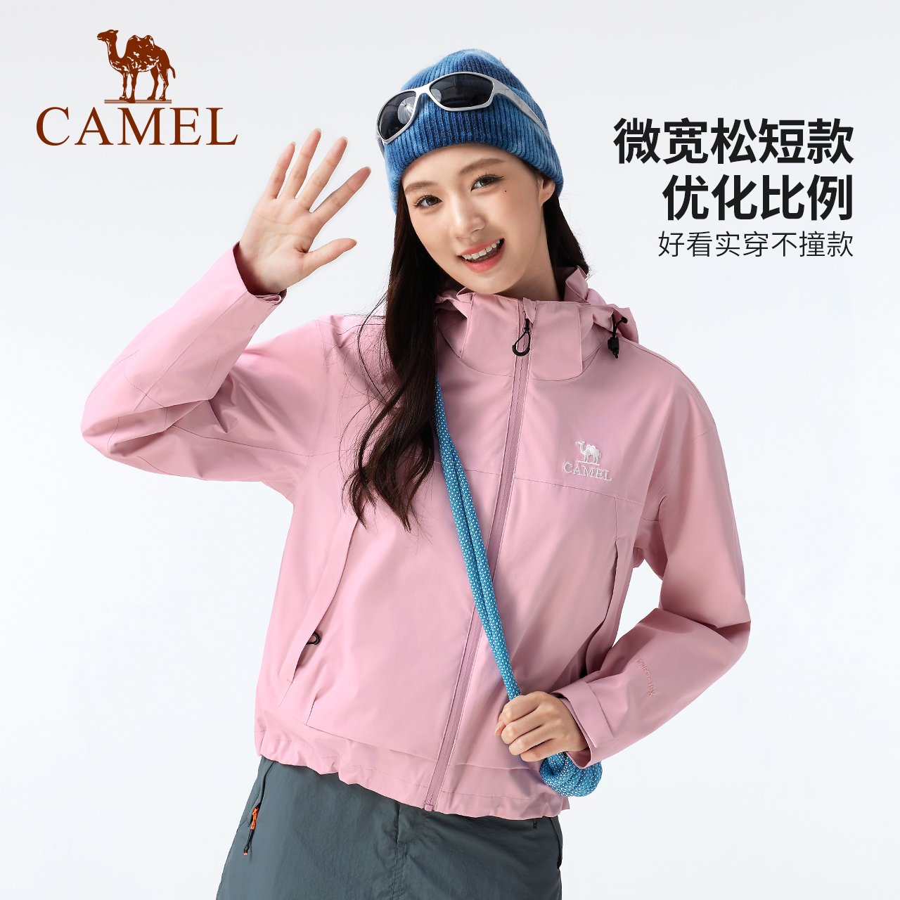骆驼户外短款单层冲锋衣女2025新款外套男防风防水旅游徒步登山服