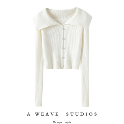 太到位了!大翻领仿珍珠扣100%纯羊绒开衫女假开衫针织外套秋冬