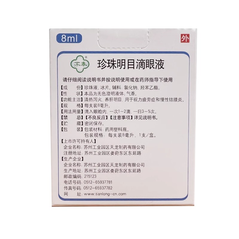 【苏春】珍珠明目滴眼液8ml*1支/盒慢性结膜炎结膜炎眼疲劳眼疲劳止痒眼睛疲劳