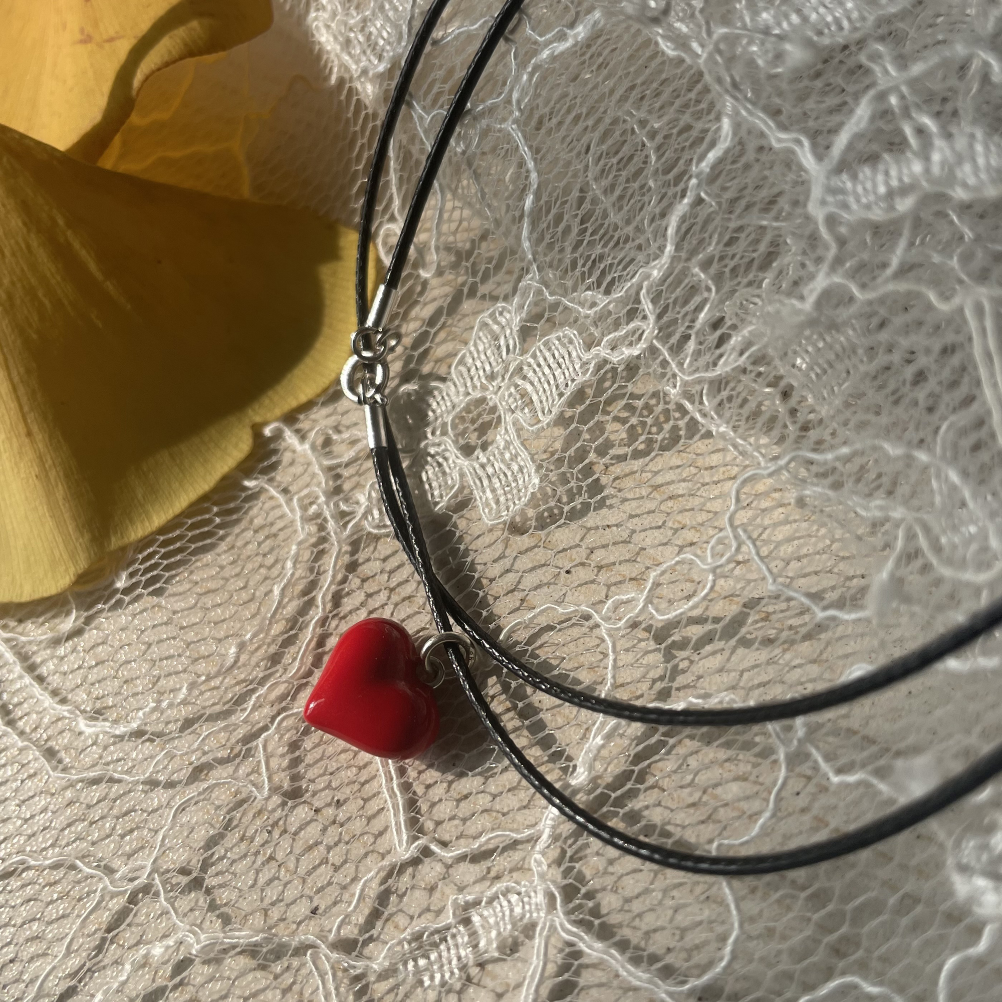 JUNHE设计新款红色桃心爱心925银吊坠项链皮绳心形控锁骨链