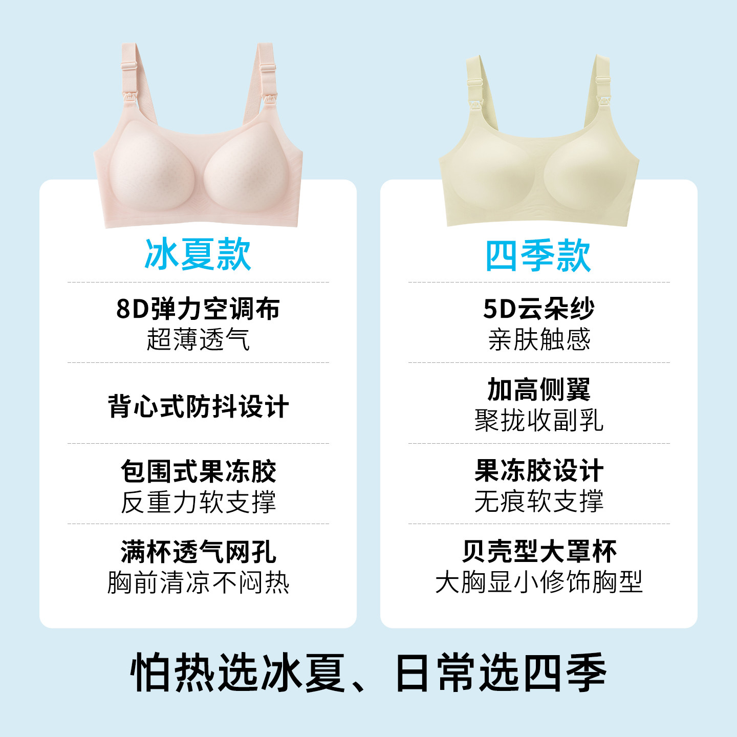 孕妇哺乳文胸夏薄防下垂聚拢产后喂奶收副乳大胸显小无痕喂奶内衣