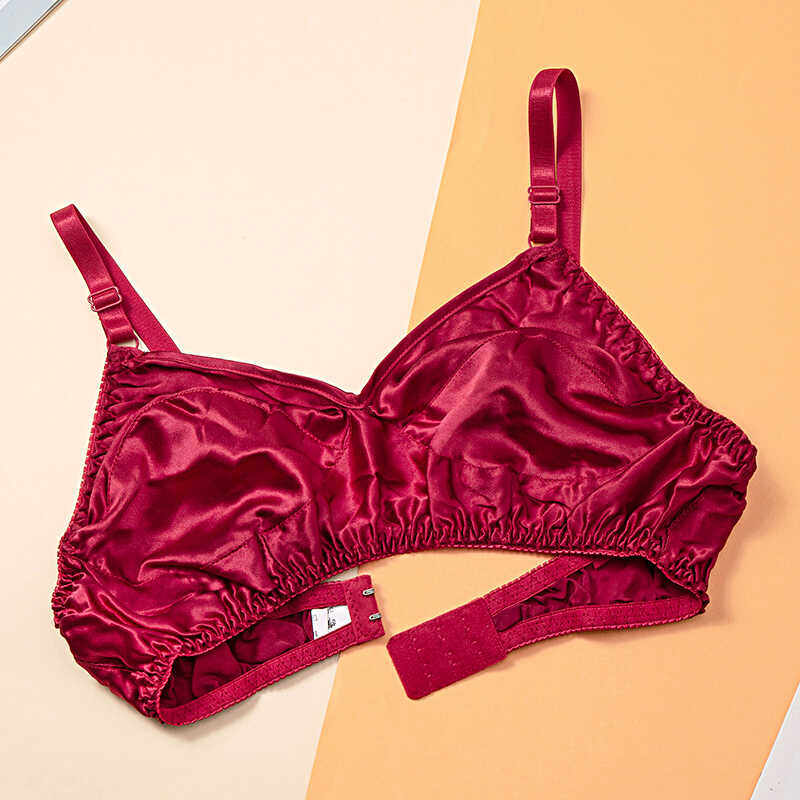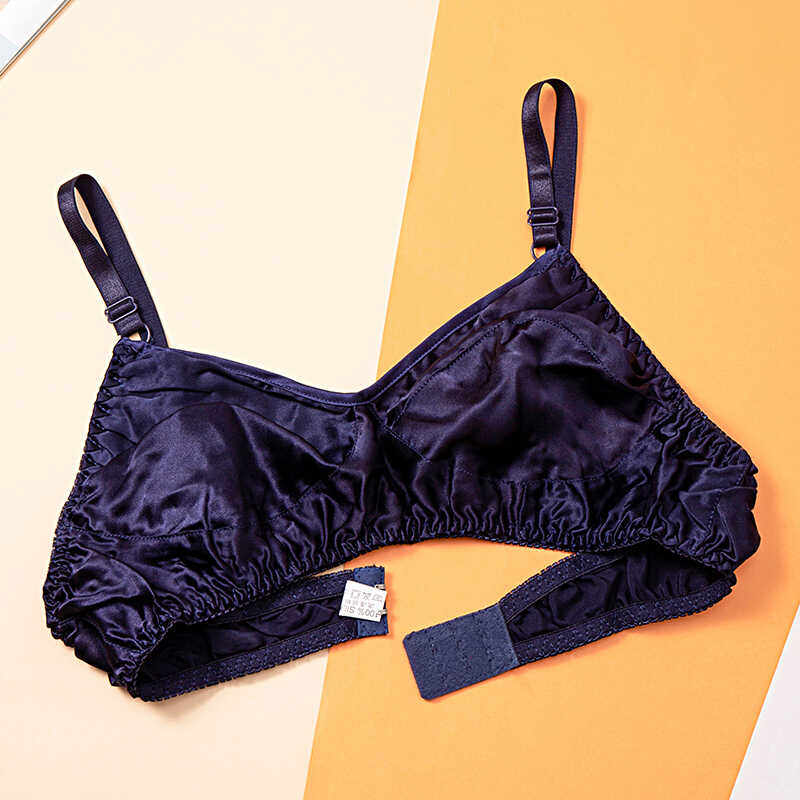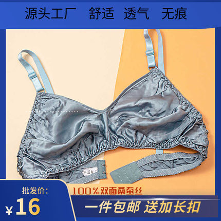 真丝文胸无钢圈无海绵100%桑蚕丝无痕内衣女夏季薄款大胸显小胸罩
