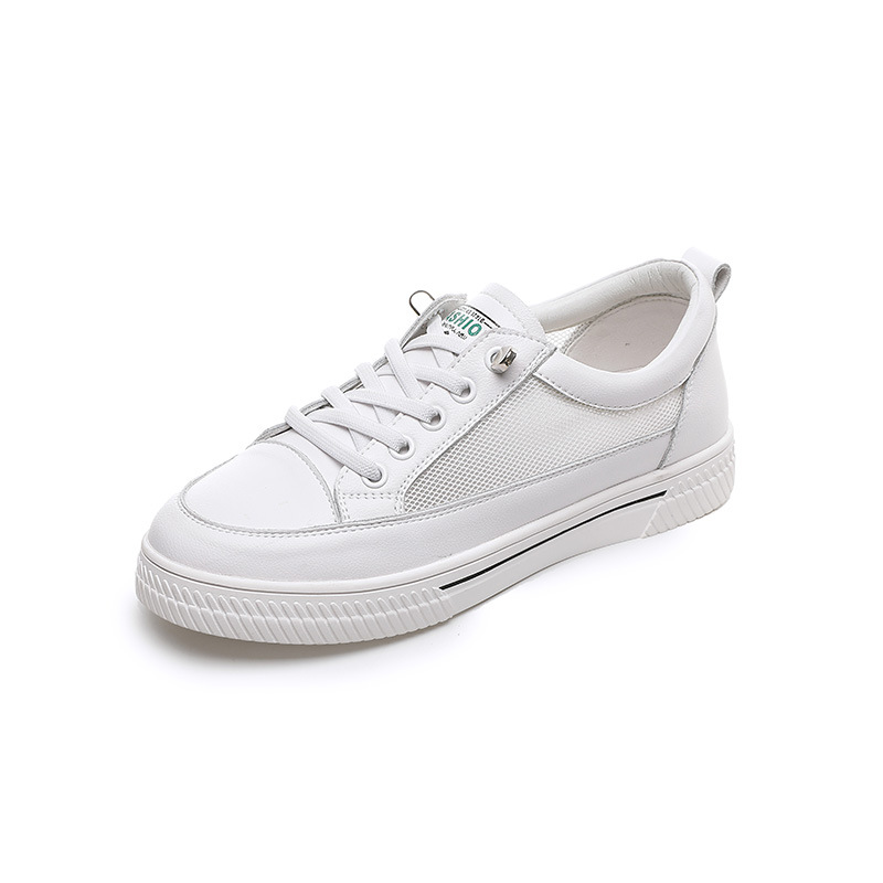 真皮小白鞋女夏季薄款厚底百搭爆款网面透气休闲运动板鞋平底白鞋