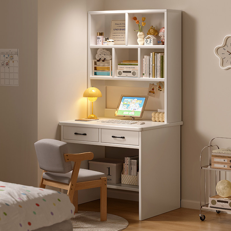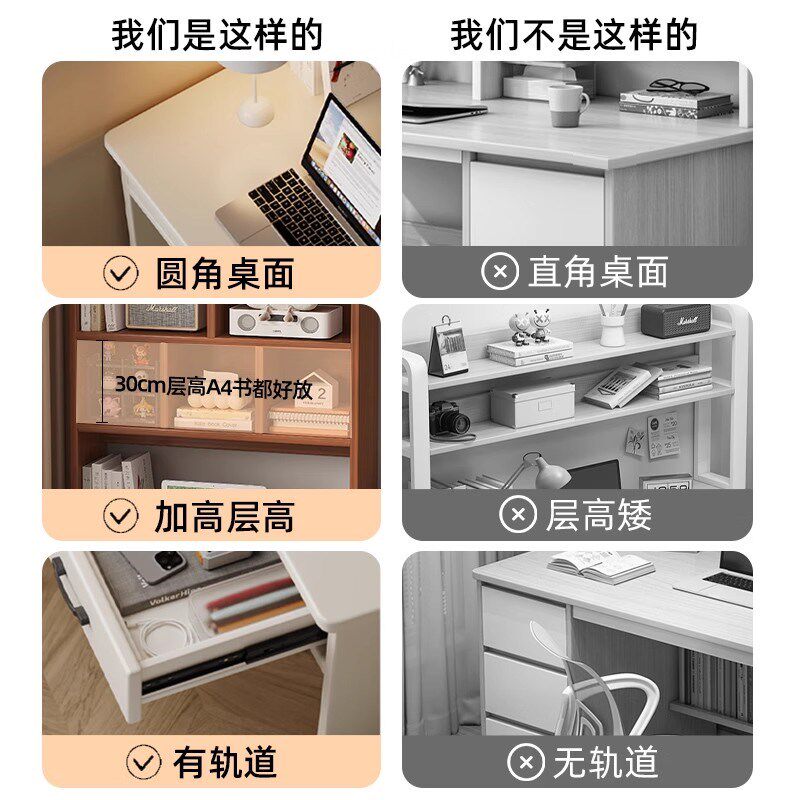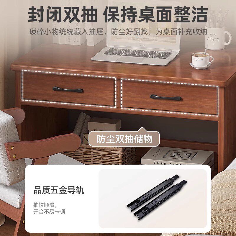 家用实木书桌书架一体初高中生学习桌带抽屉小户型桌子简约床边桌