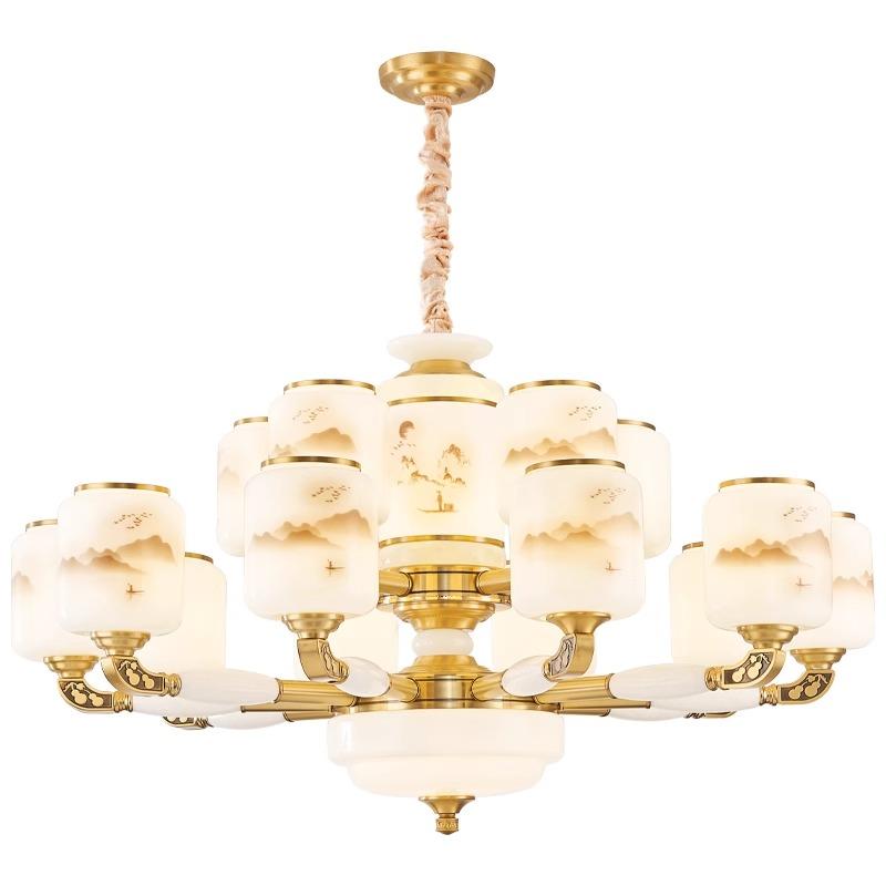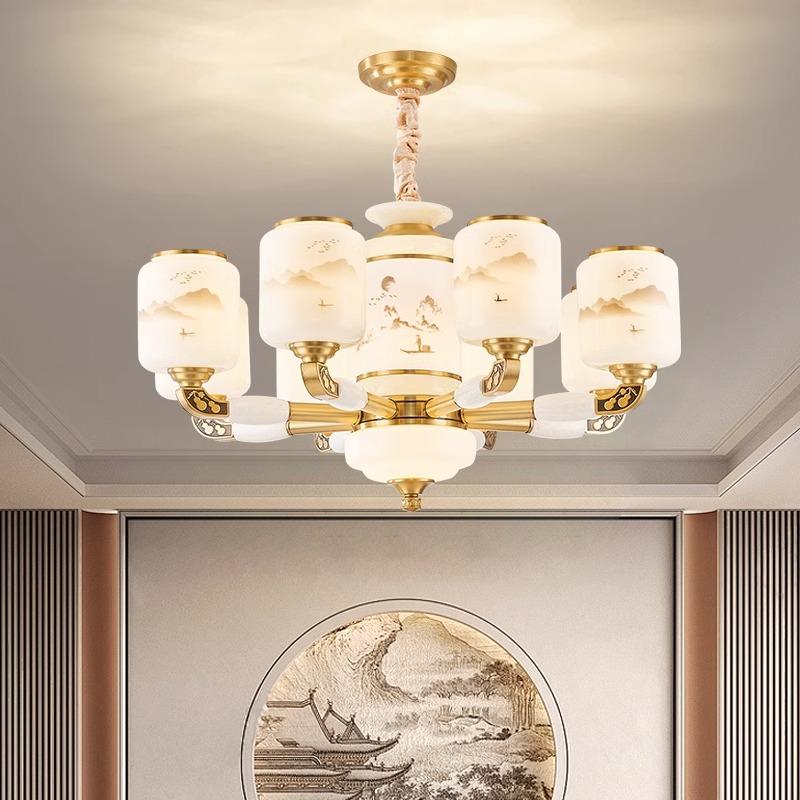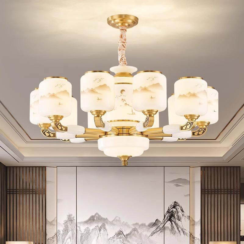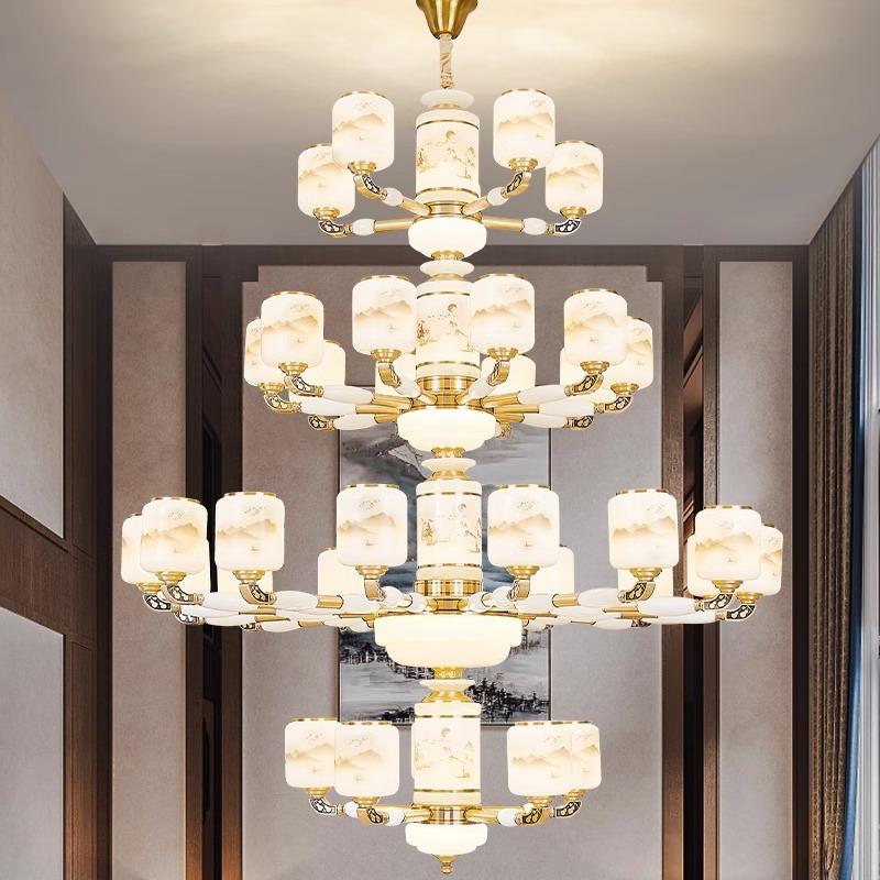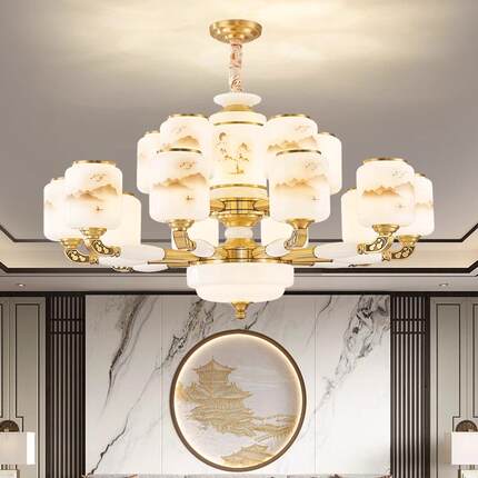 新中式客厅吊灯现代复式楼别墅大吊灯全铜中国风禅意大厅餐厅灯具