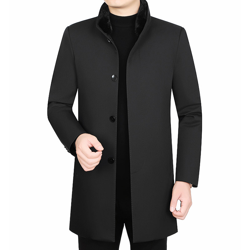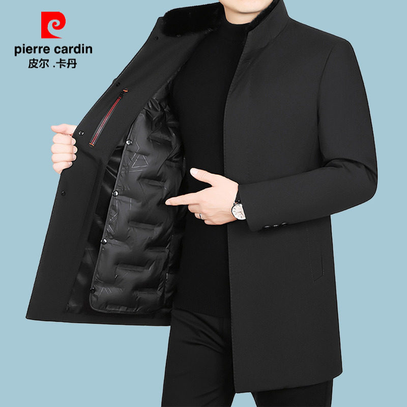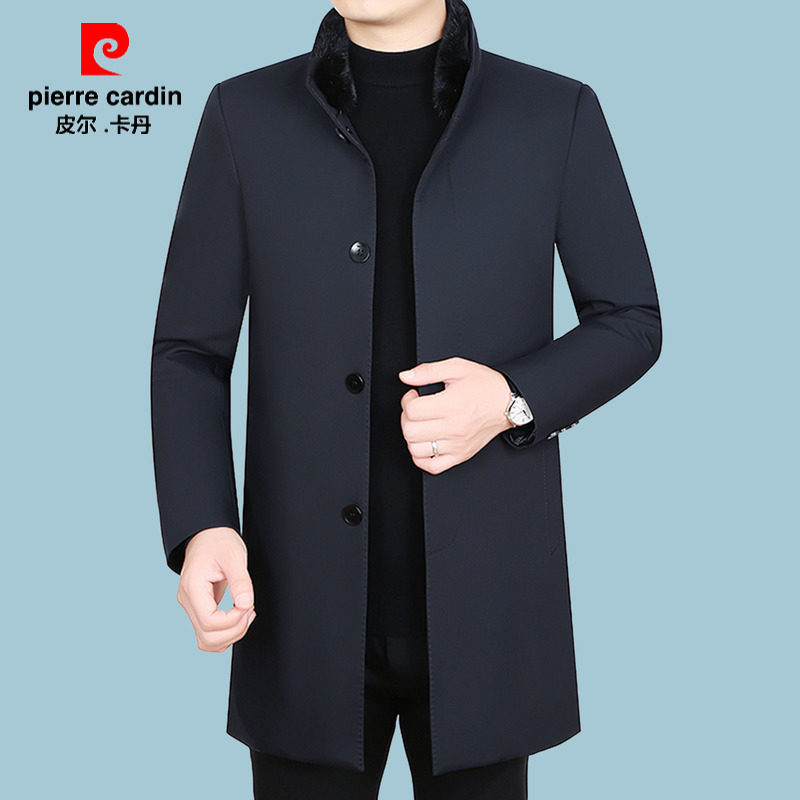 皮尔卡丹男装冬季水貂毛领羽绒服男士可脱卸内胆白鸭绒中长款外套