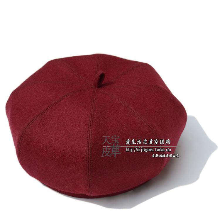 新款羊毛呢无檐中老潮流贝雷帽