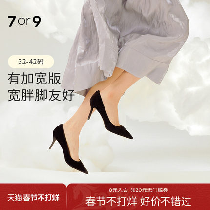 7or9黑色高跟鞋羊皮通勤浅口单鞋