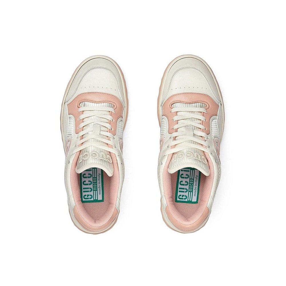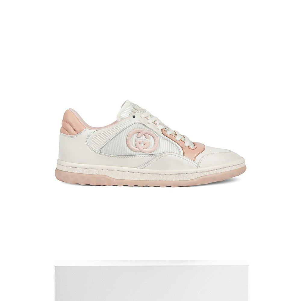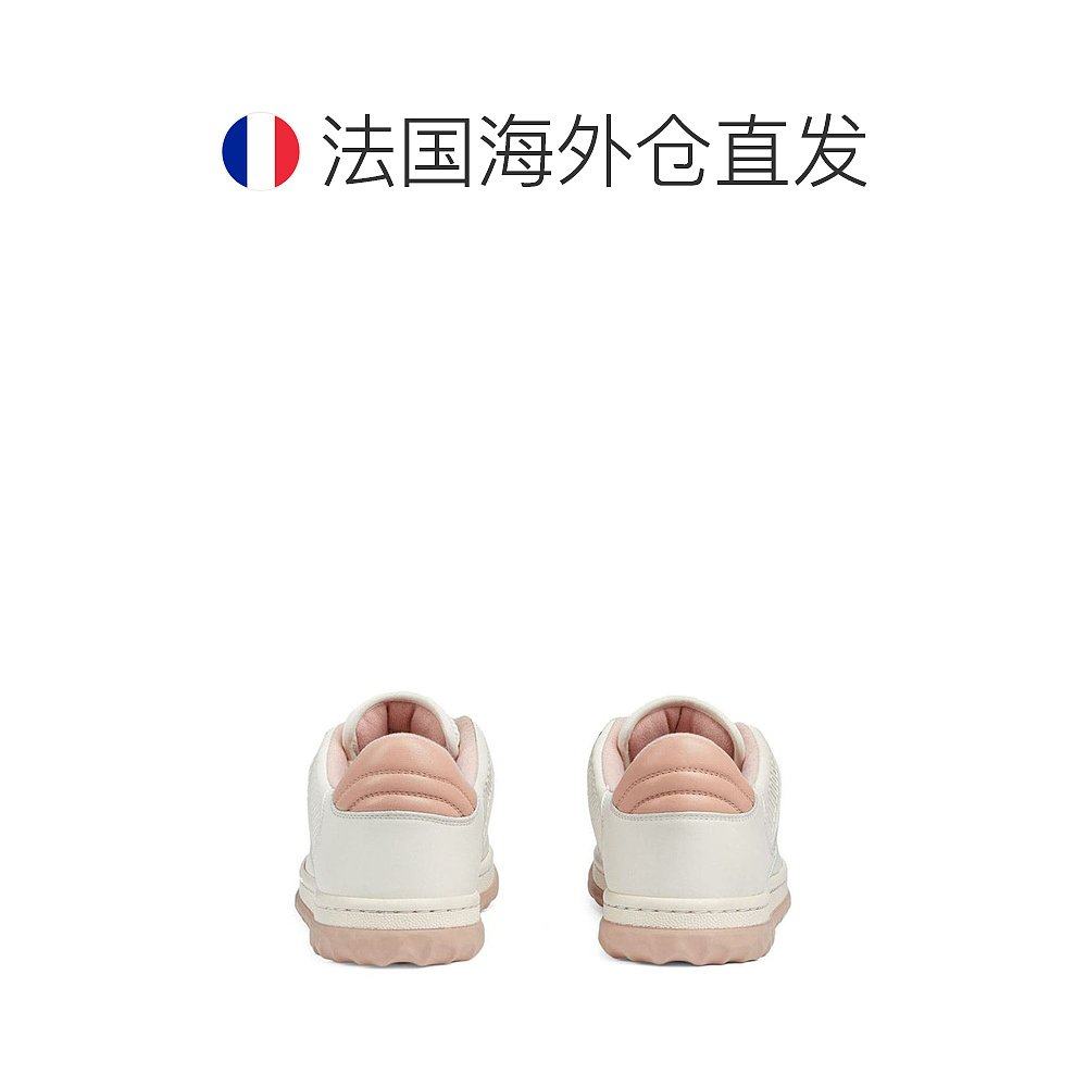 自营欧洲直邮GUCCI/古驰 女士米白色粉色皮革MAC80低帮系带运动鞋