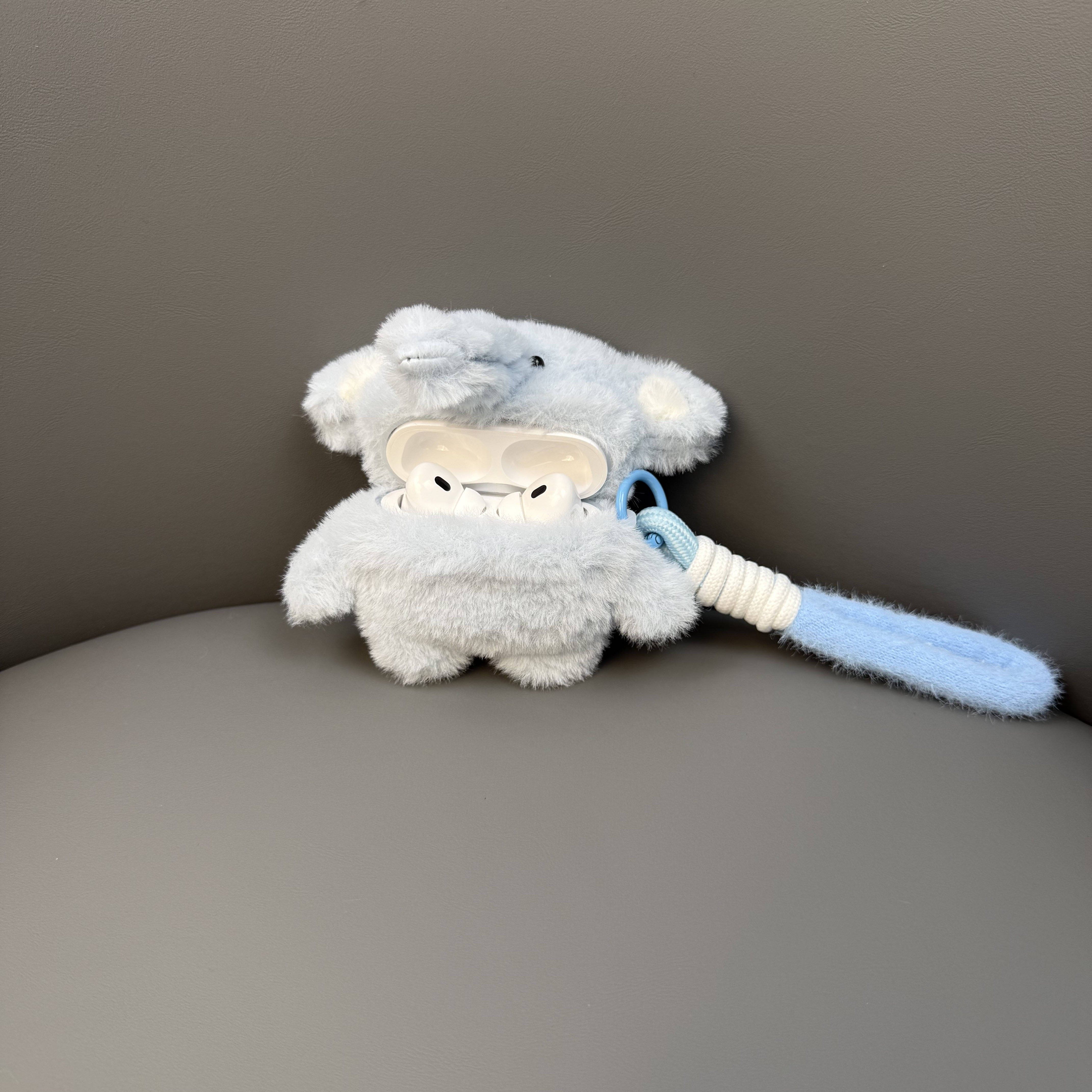 可爱毛绒蓝色小象适用AirPodspro3代耳机套airpods pro2代苹果AirPods4代无线蓝牙软壳1/2代个性防摔保护套