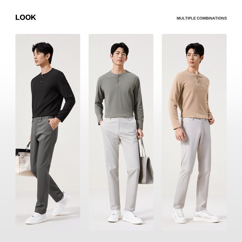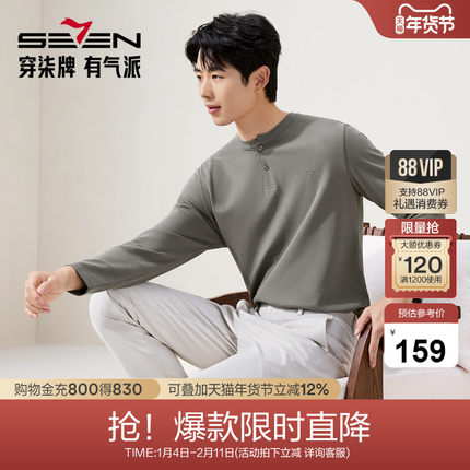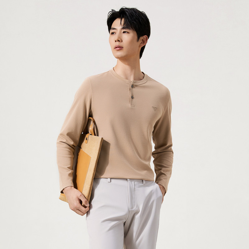 【华夫格/亨利领】柒牌男士长袖T恤秋季新款时尚休闲舒适百搭t恤