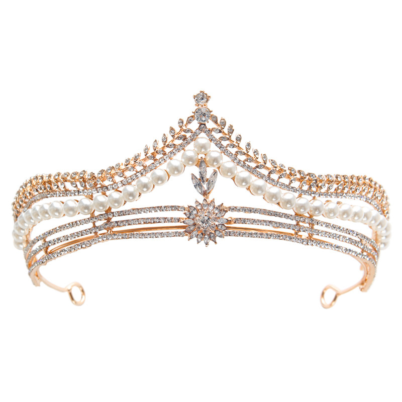 新款韩式奢华优雅精致复古珍珠新娘头饰皇冠摄影婚纱礼服结婚配饰