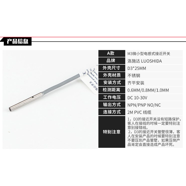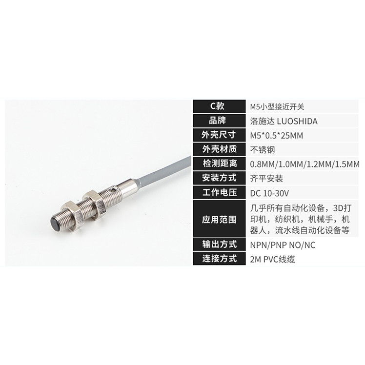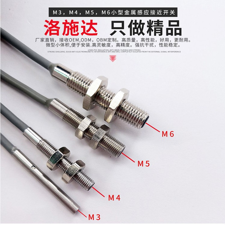 洛施达M3M4M5M6接近开关传感器感微小型电感式金属应器直流三线NO
