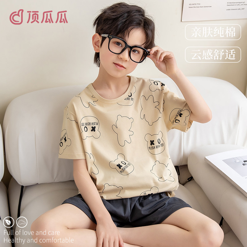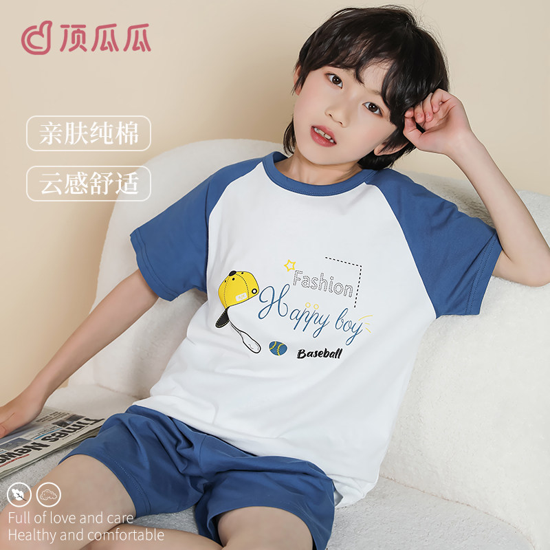 儿童睡衣男童家居服小孩空调服男孩纯棉短袖大童套装薄款宝宝夏季