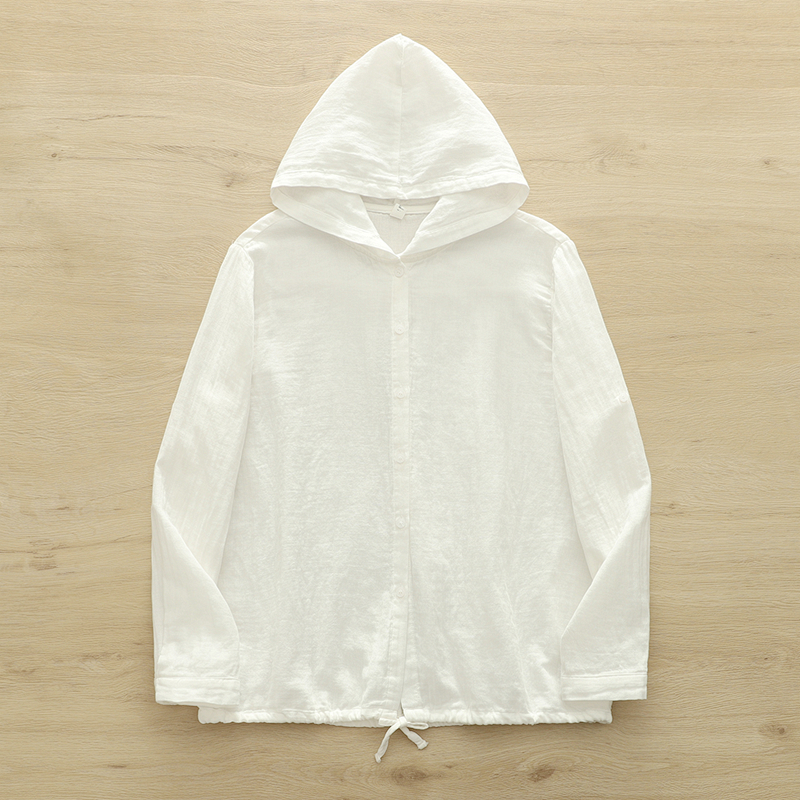2025夏季文艺小清新双层棉纱连帽防晒衣女长袖短外套学生薄外搭潮
