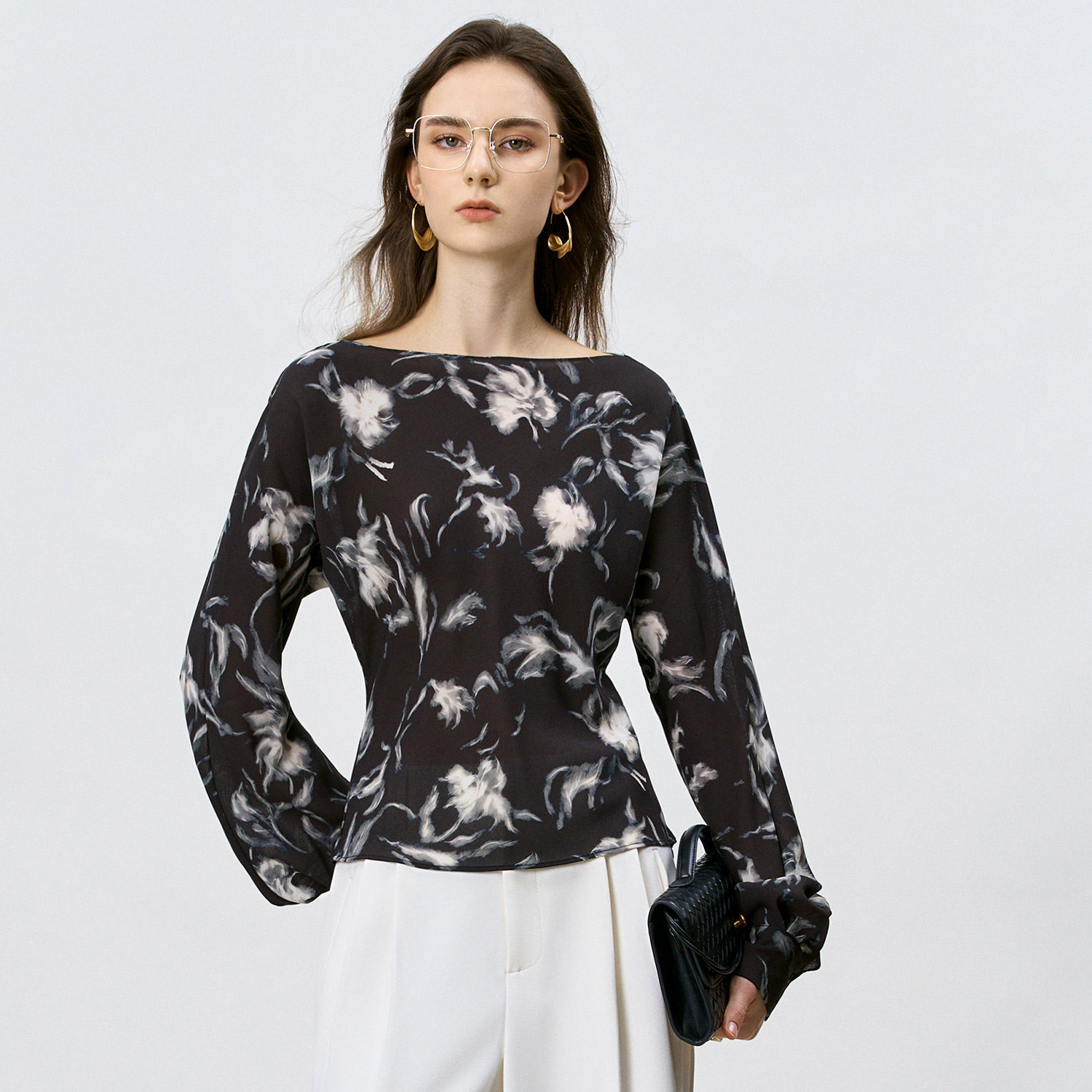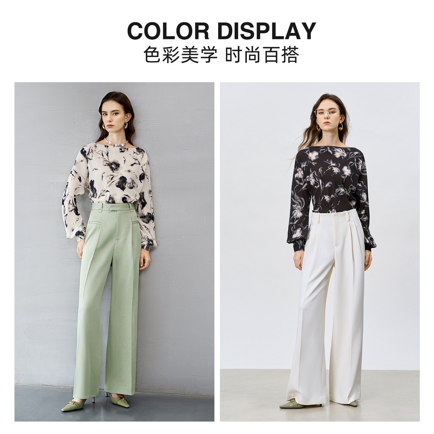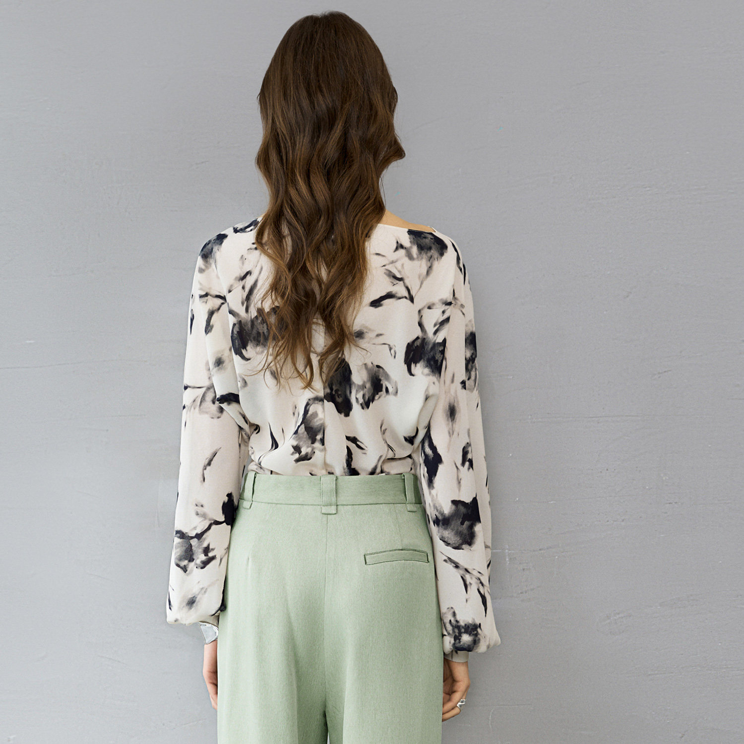 颜域水墨印花泡泡袖衬衫女2026春装新款宽松新中式通勤设计感上衣
