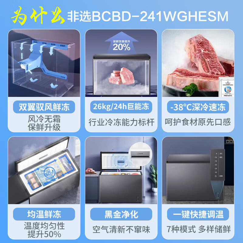 A【风冷无霜】海尔冷柜家用商用风冷无霜200升超低温冷冻冷藏冰柜