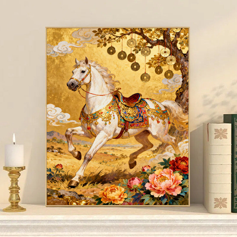 马踏金辉国潮数字油画Diy手绘画