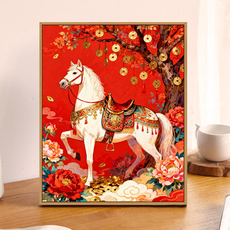 马踏金辉 马年新款数字油画Diy手绘画画填色治愈系丙烯涂色填充画