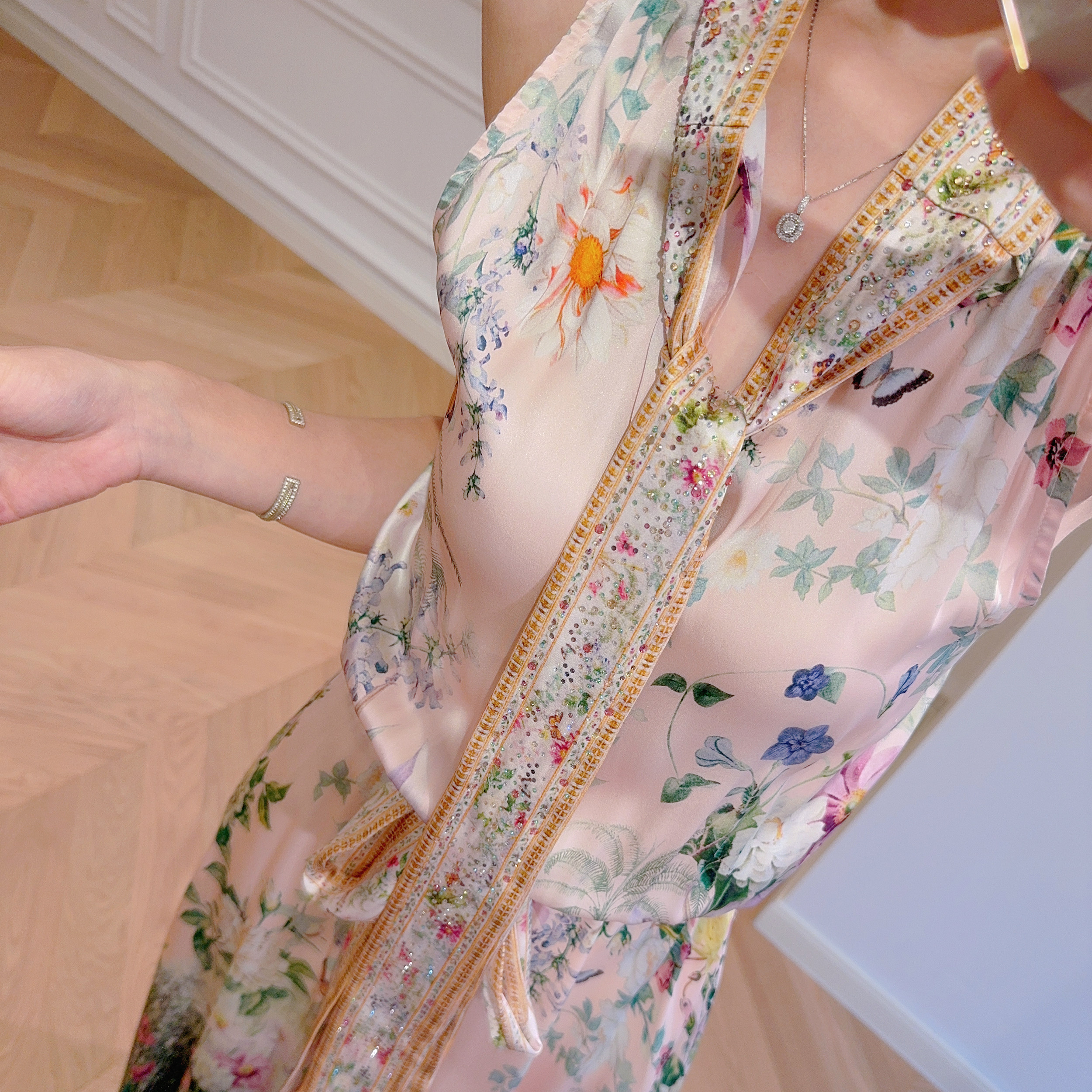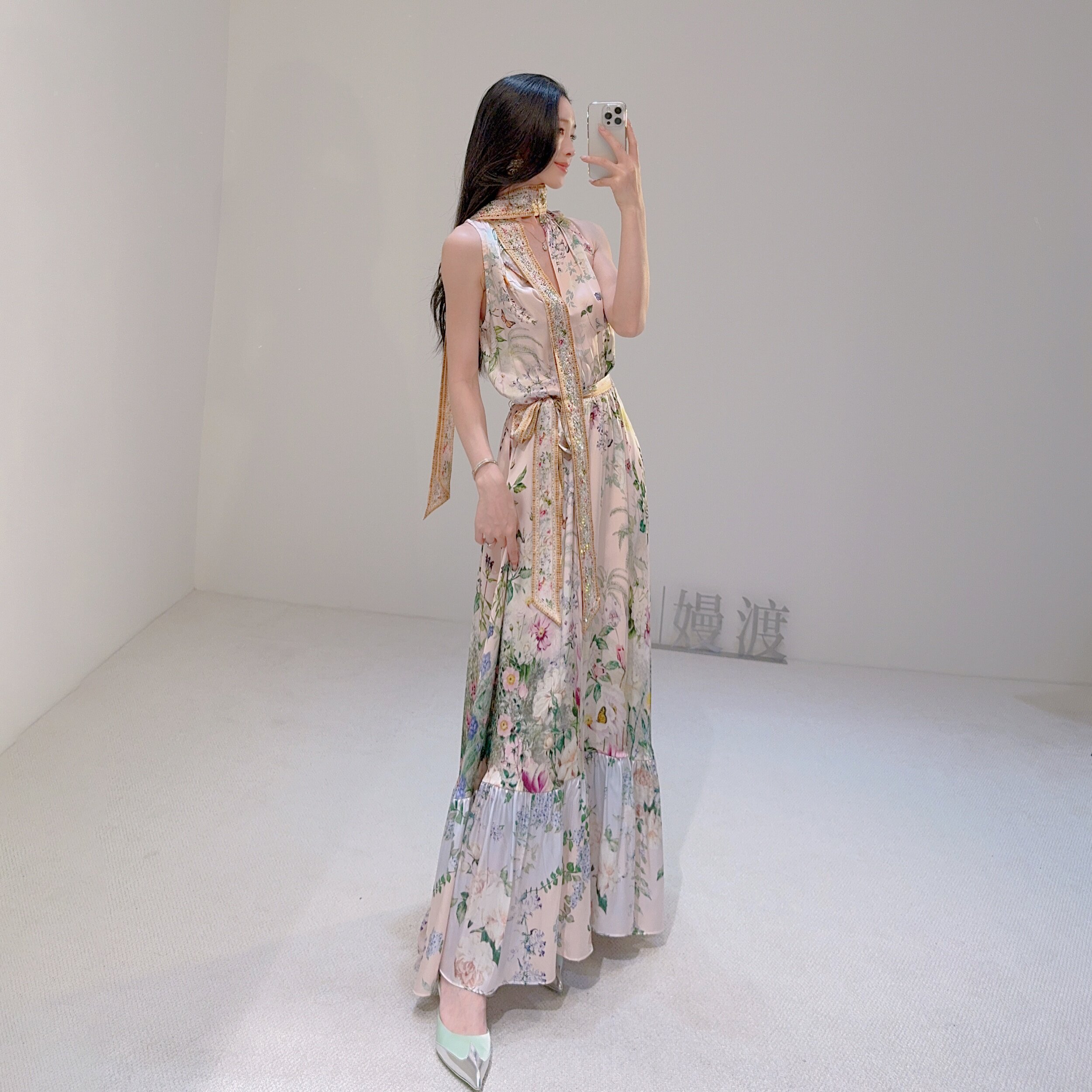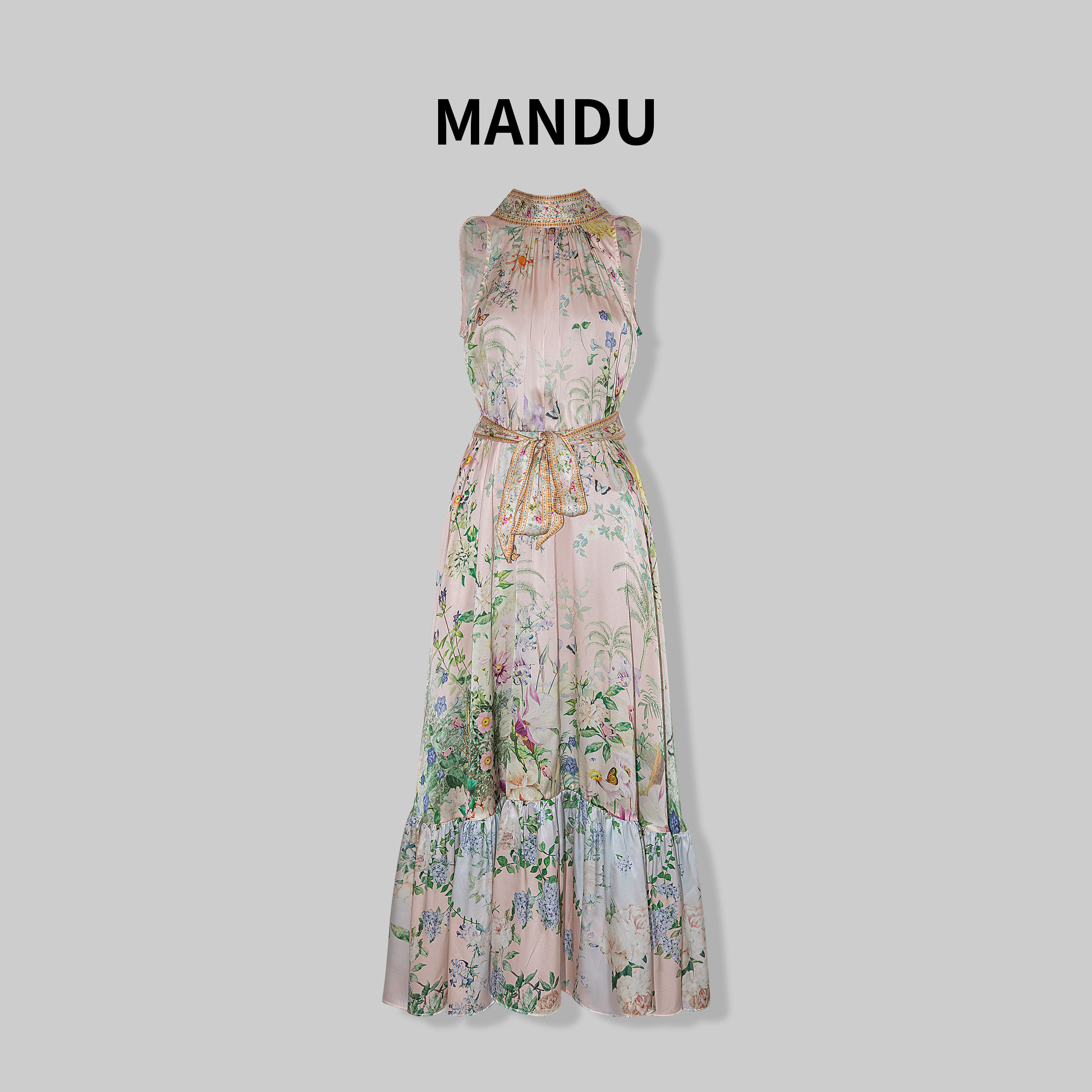 嫚渡|真丝连衣裙高级无袖挂脖轻奢桑蚕丝法式显瘦度假公主长裙