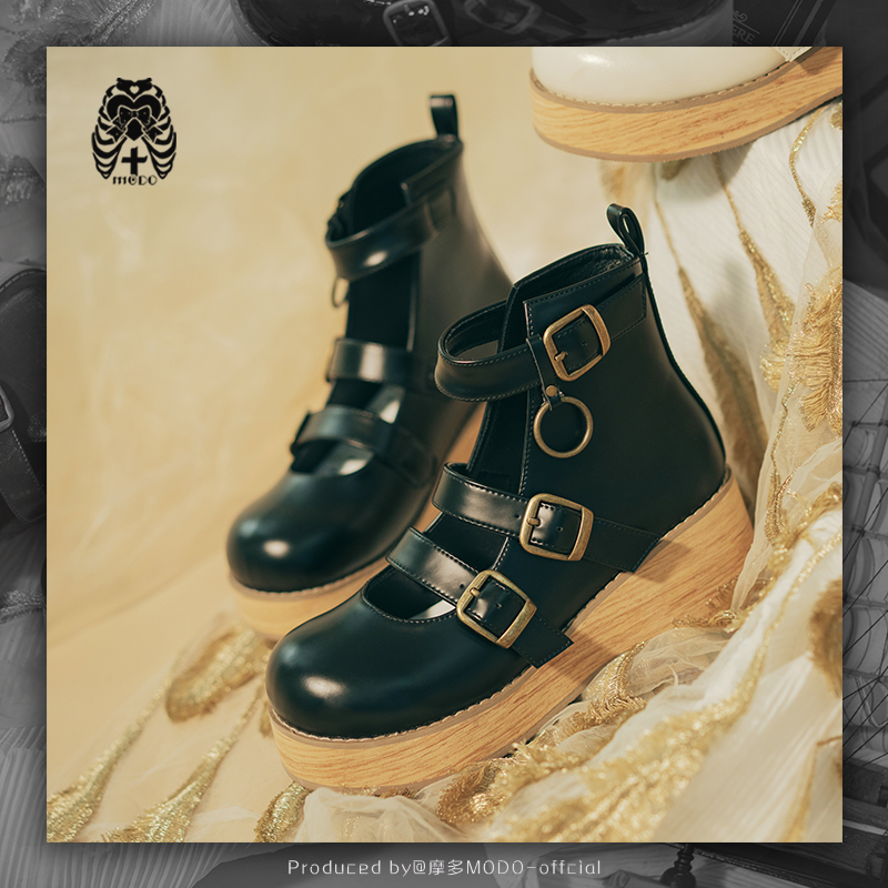 【低跟现货】三扣松糕摩多modo原创复古厚底鞋lolita鞋日系单鞋女