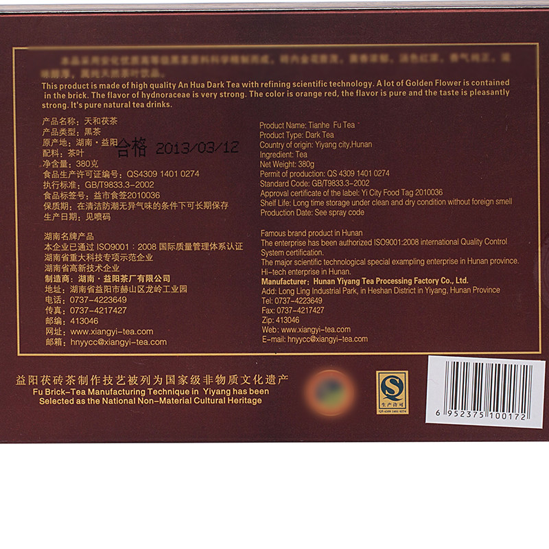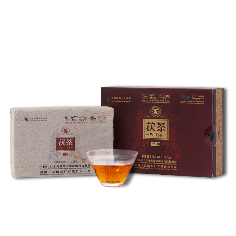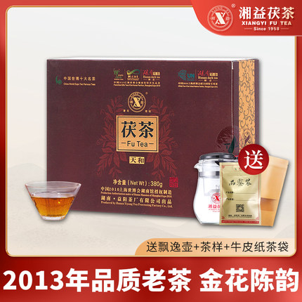 湘益茯茶湖南安化金花茯砖茶2013世博名茶天和茯茶380g特产老黑茶