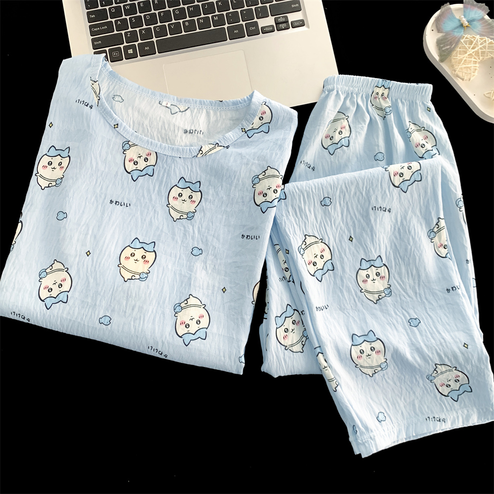 新款云朵棉睡衣女长袖长裤甜美格子爱心卡通印花学生款简约家居服