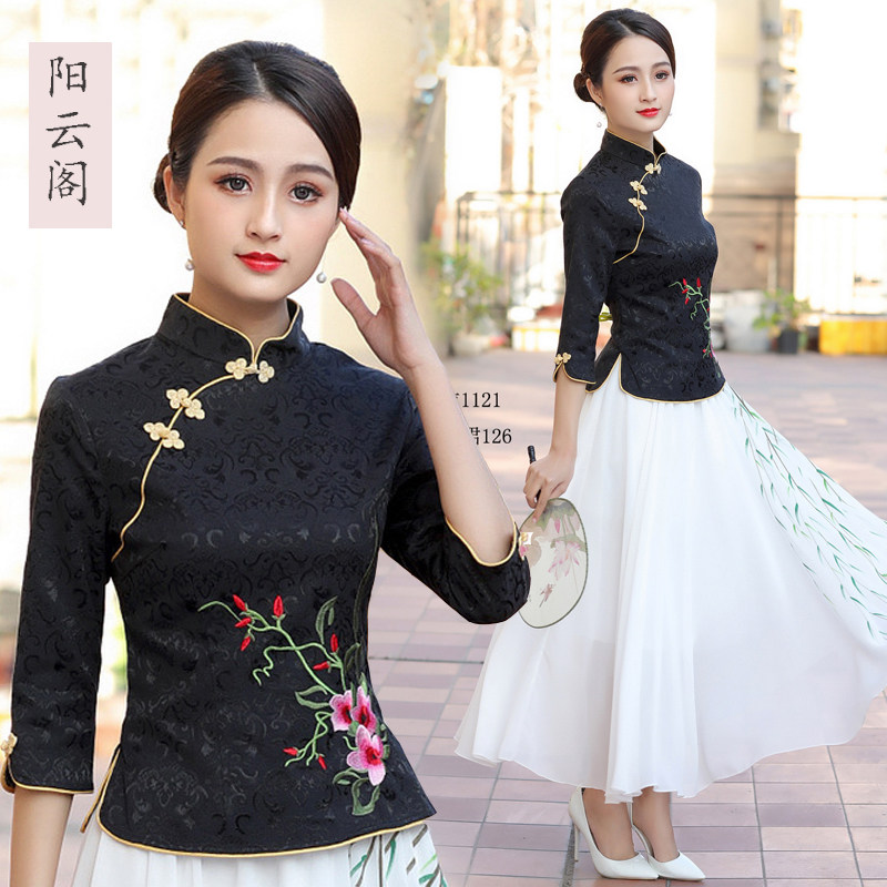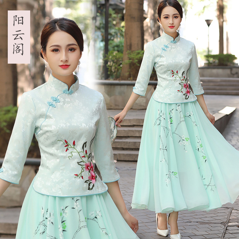 春夏民族中国风少女装改良两件套装唐装复古民国风旗袍连衣裙上衣