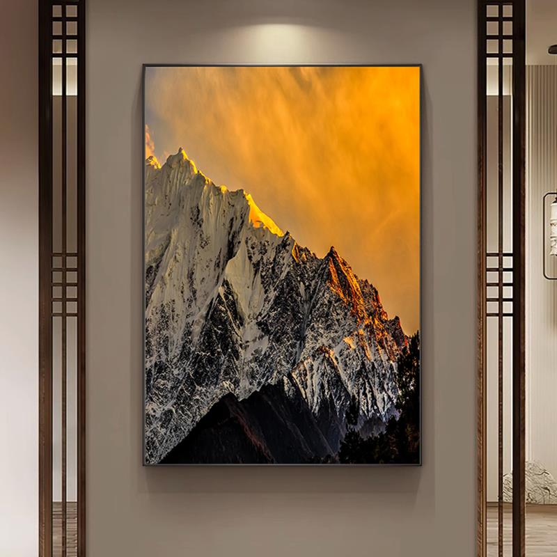 日照金山玄关装饰画客厅背景墙落地壁画高级感梅里雪山办公室挂画