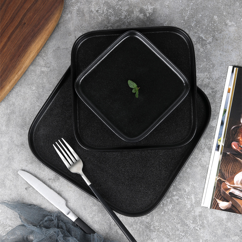 日式纯色磨砂牛排盘简约直身方形陶瓷盘子黑色立边平盘西餐厅餐具