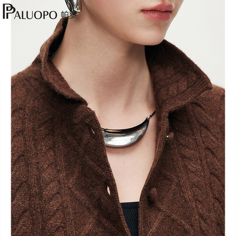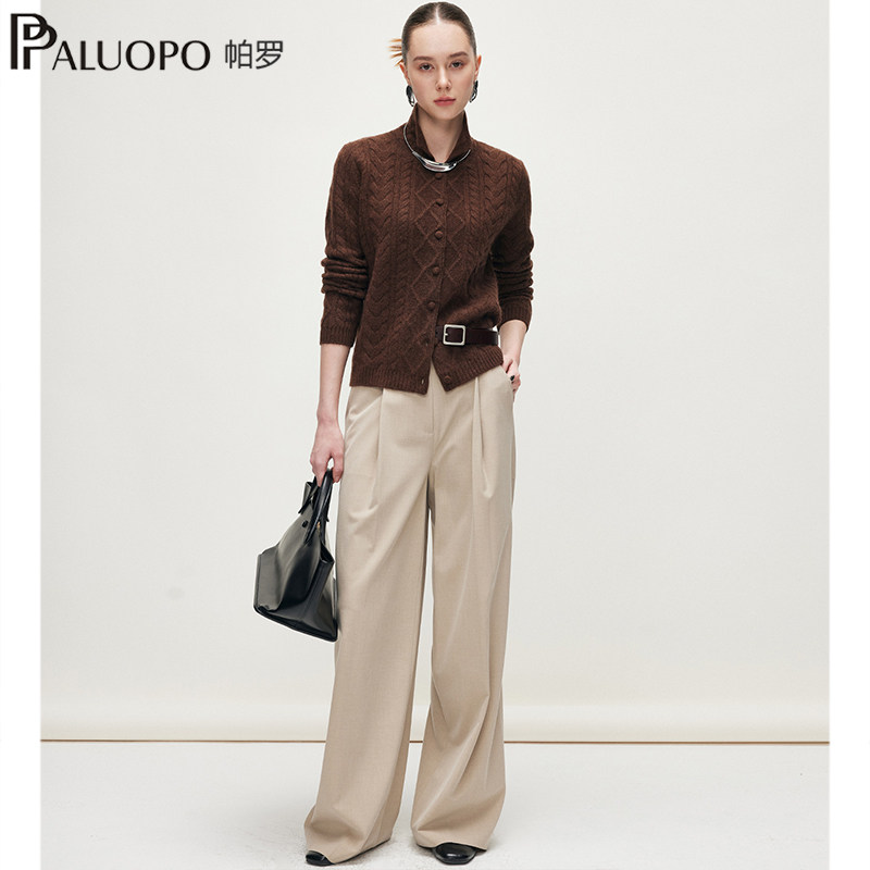 PALUOPO/帕罗【商场同款RED红标系列】秋冬新款翻领纯山羊绒衫女