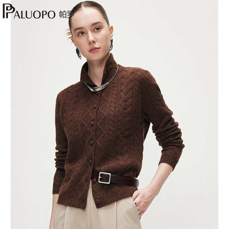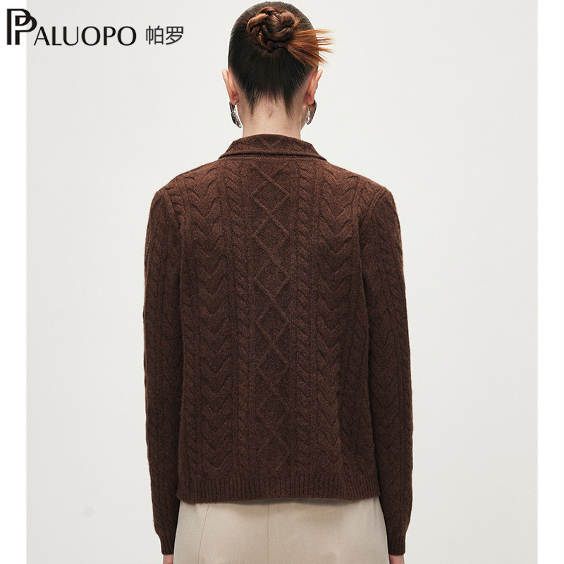帕罗长袖绞花翻领淑女加厚羊绒衫